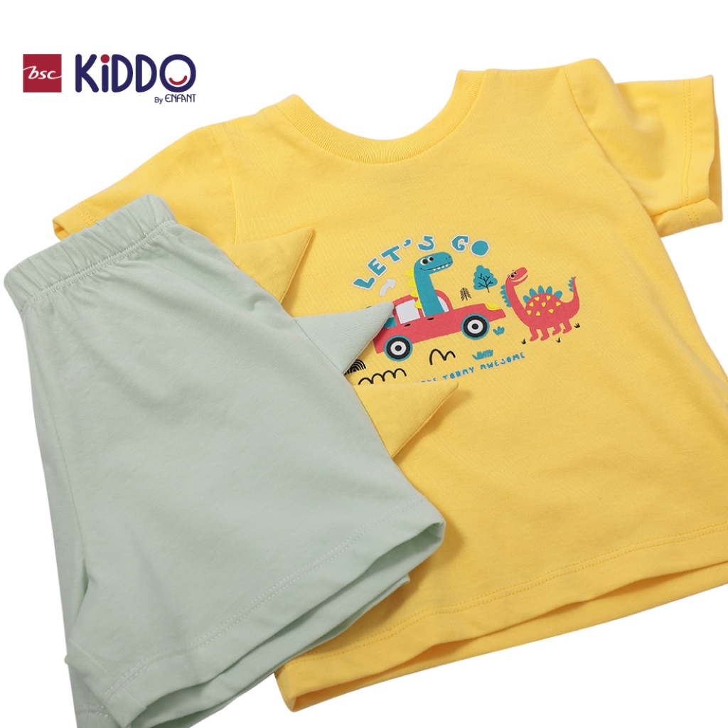ENFANT (อองฟองต์) BSC KIDDO by Enfant ชุดเสื้อแขนสั้น+กางเกงขาสั้น สำหรับเด็ก 6-12 เดือน คอลเล็กชั่น DINO DUDE สีเหลือง