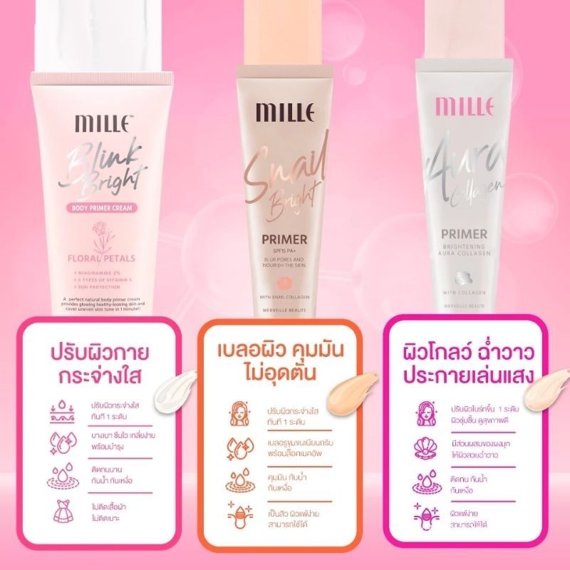 ส่งฟรี/มีไลฟ์ (หลอด) Primer Mille ไพรเมอร์ มิลเล่ Sunscreen Primer ก้นแดด ไพรเมอร์ โลชั่น ทาผิว