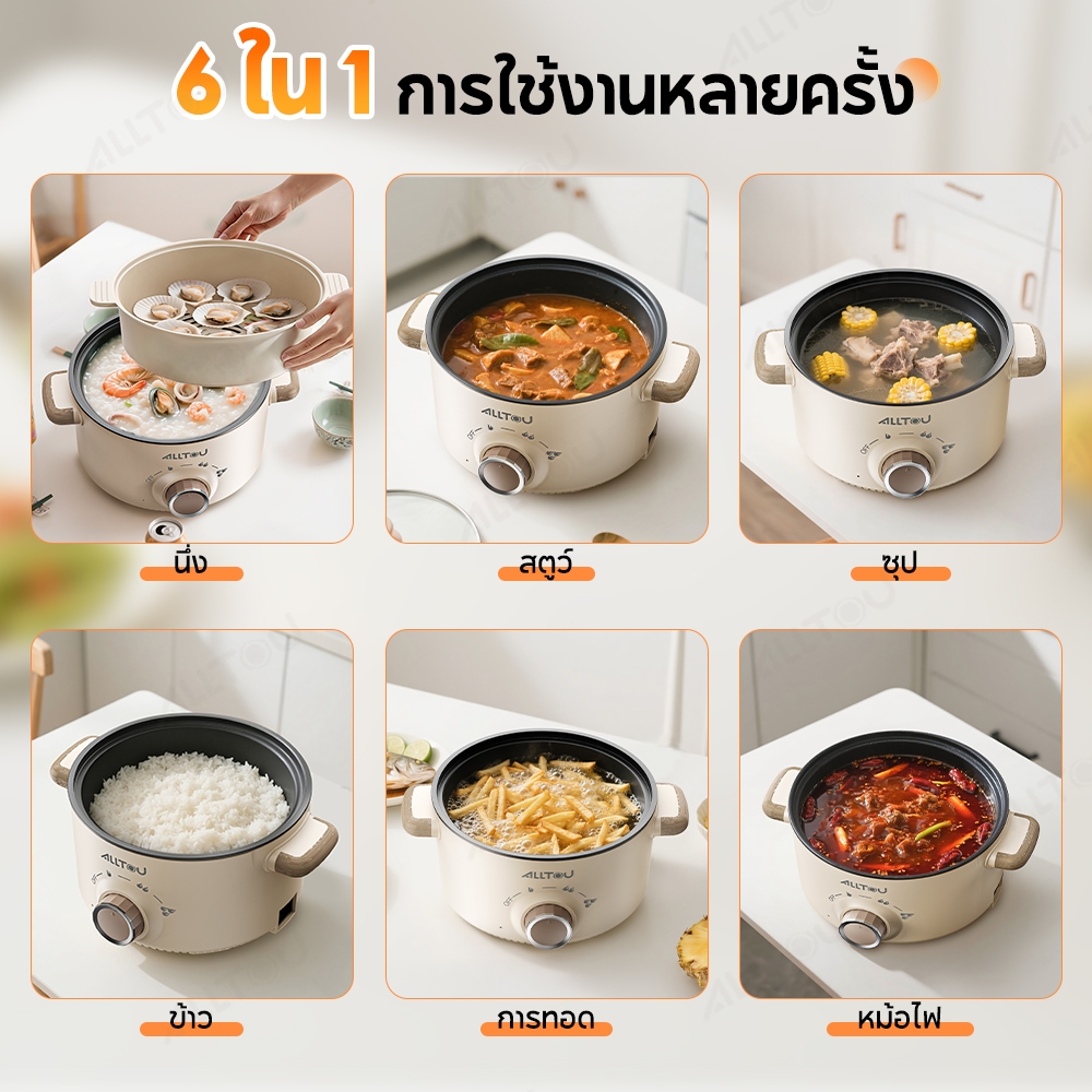 ALLTOU หม้อไฟฟ้า หม้อไฟฟ้ามัลติฟังก์ชั่น 22cm/28cm กระทะไฟฟ้า 5L แบบไม่ติดกระทะ กระทะไฟฟ้าเคลือบสารกันติดอเนกประสงค์ 2-8 คน กระทะไฟฟ้า หม้อต้ม ไฟฟ้า หม้อชาบู หม้อสุกี้