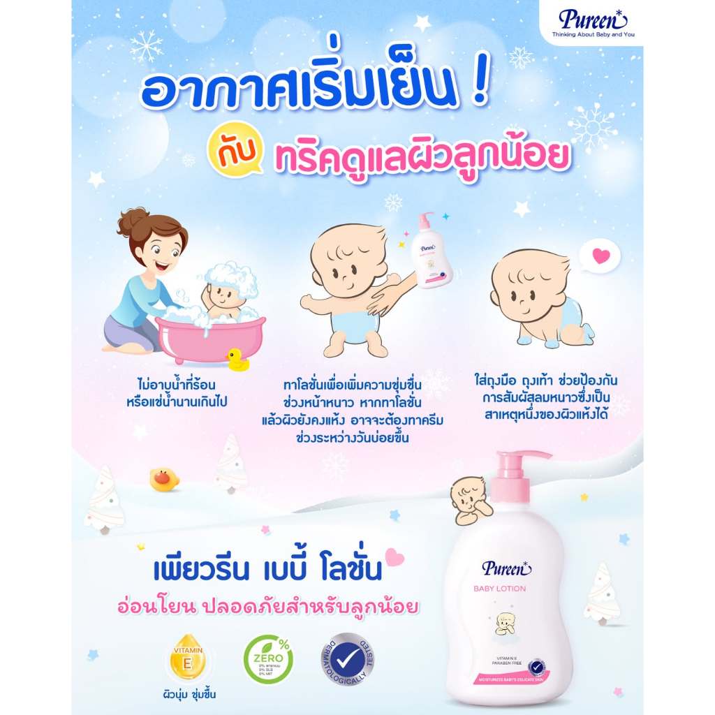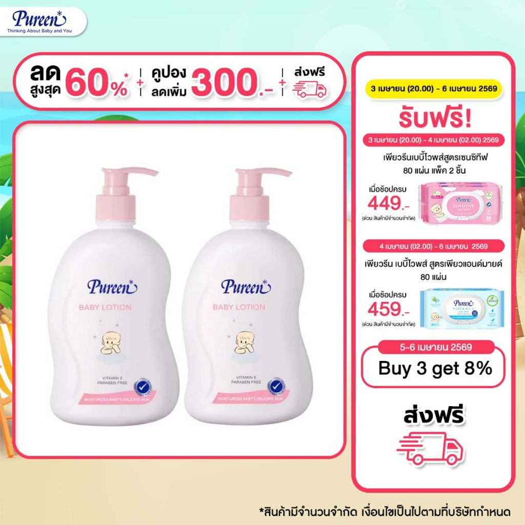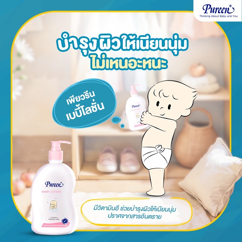 [1 แถม 1] Pureen เพียวรีน เบบี้โลชั่น ขนาด 500 มล.ช่วยบำรุงผิวให้เนียนนุ่ม ไม่เหนียวเหนอะหนะ ปราศจากสารอันตราย กลิ่นหอม