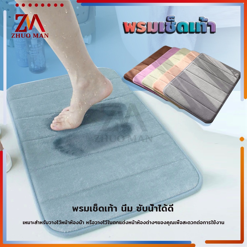 พรมเช็ดเท้าเมมโมรี่โฟม พรมเช็ดเท้าห้องน้ำ พรมกันลื่น เมมโมรี่โฟม พรมดักฝุ่น ด้านล่างเป็นแผ่นกันลื่นแห้งไว