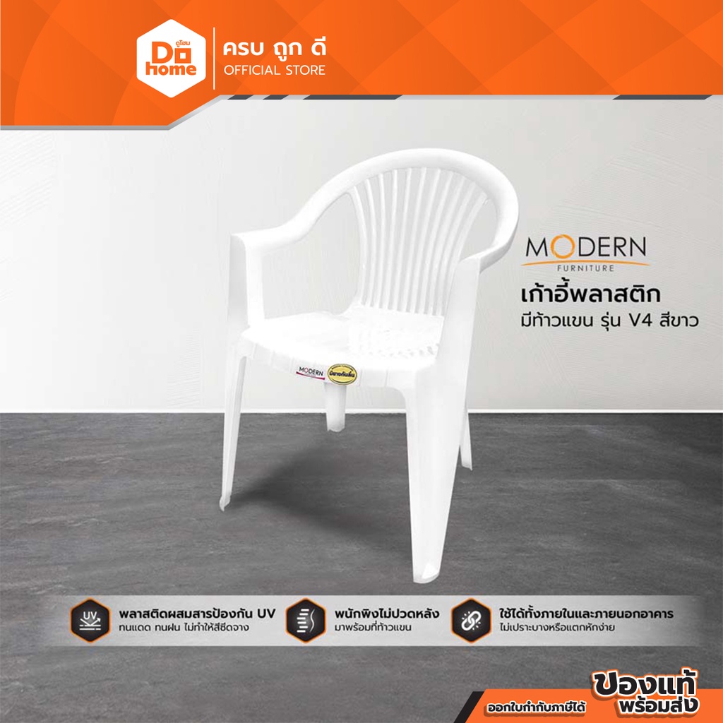 Modern เก้าอี้พลาสติก ท้าวแขน รุ่น V4 สีขาว |AB|
