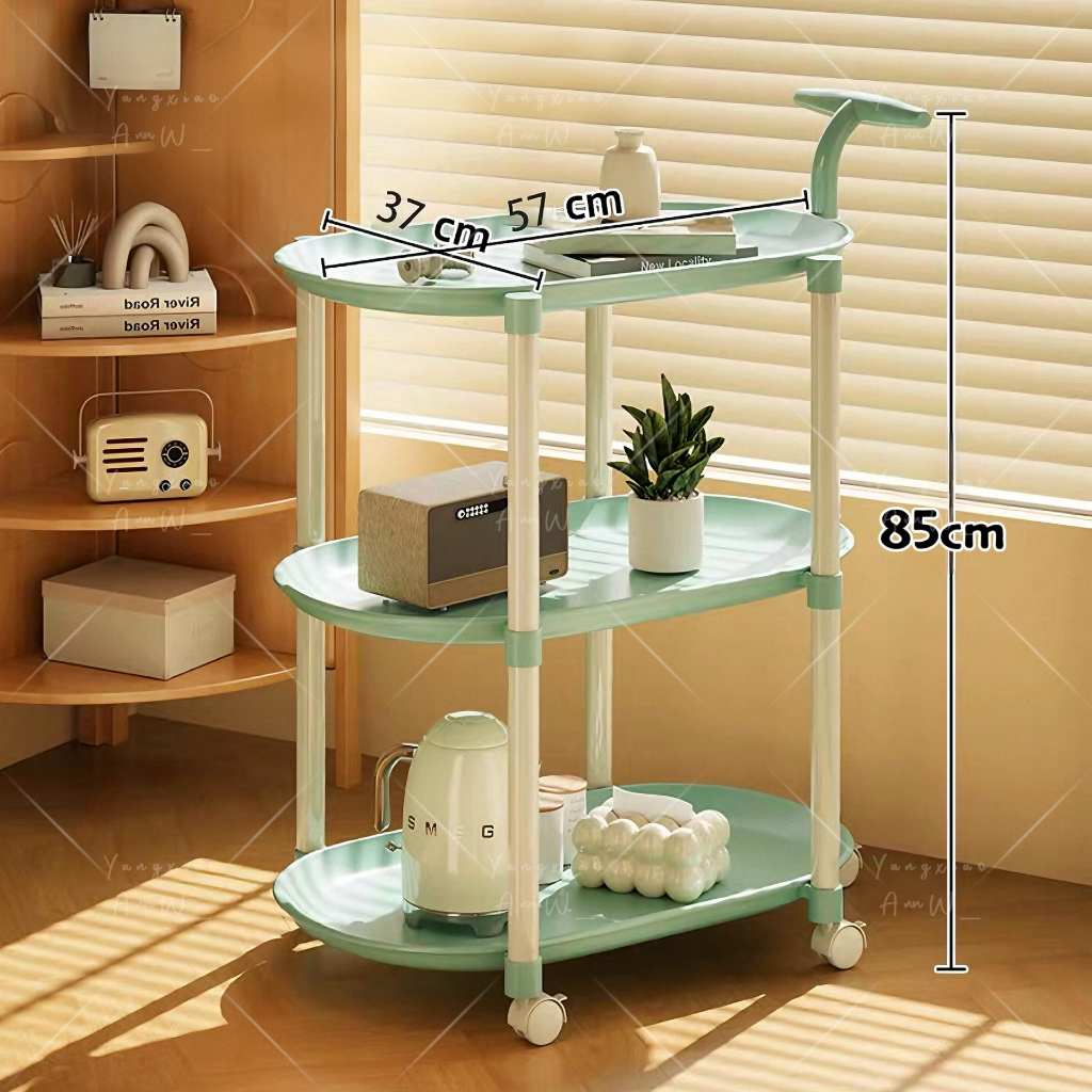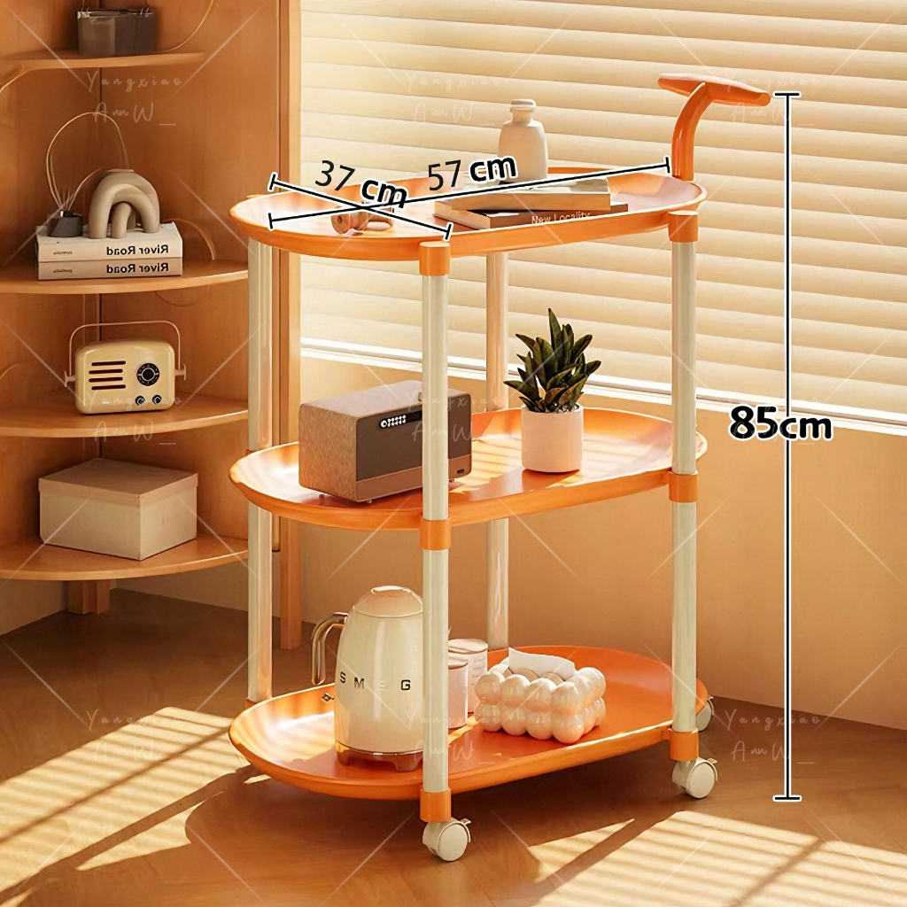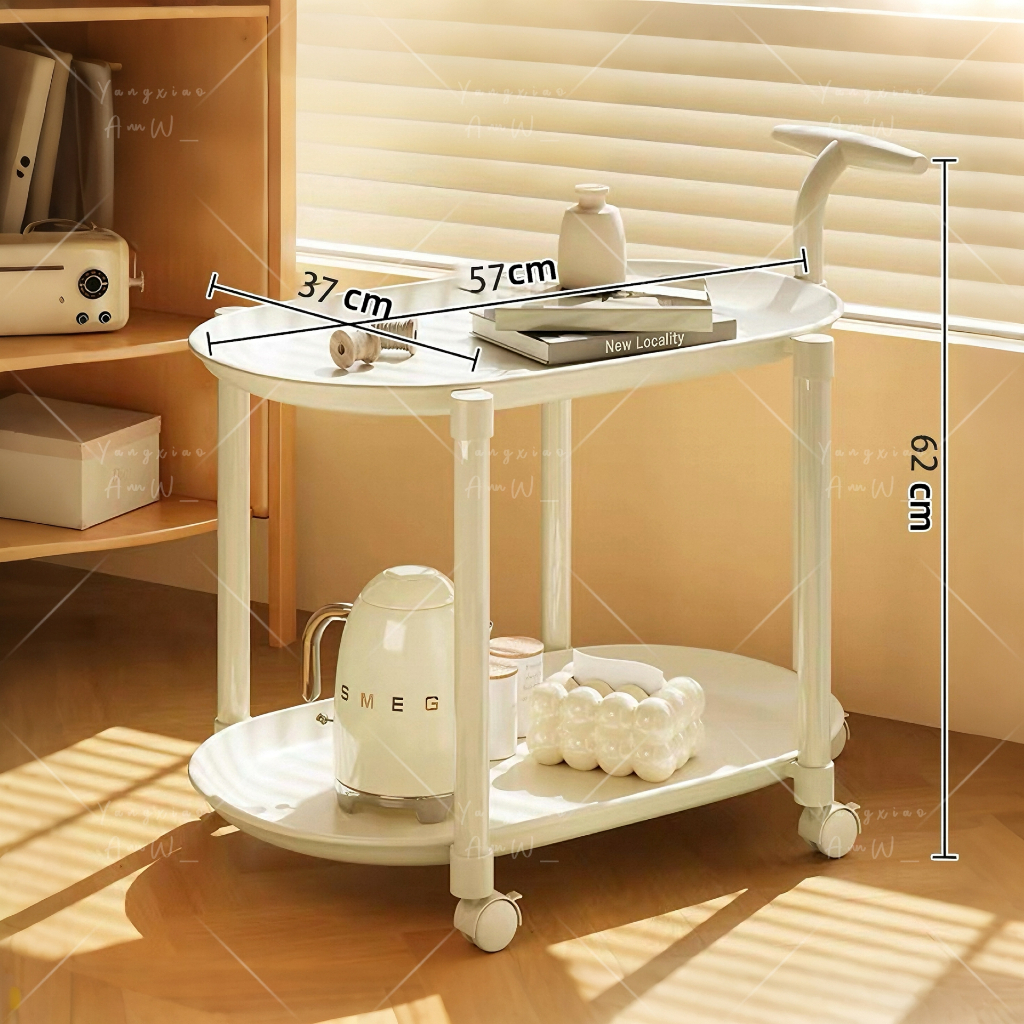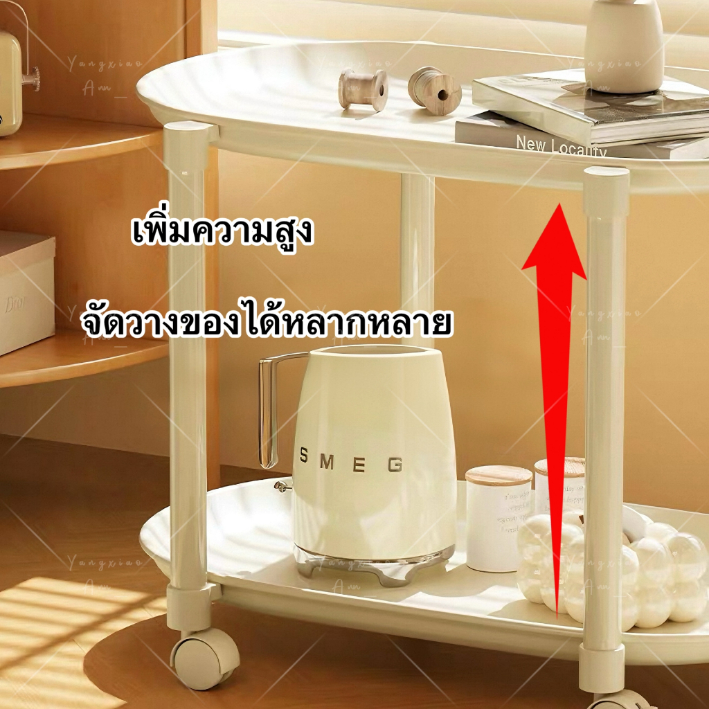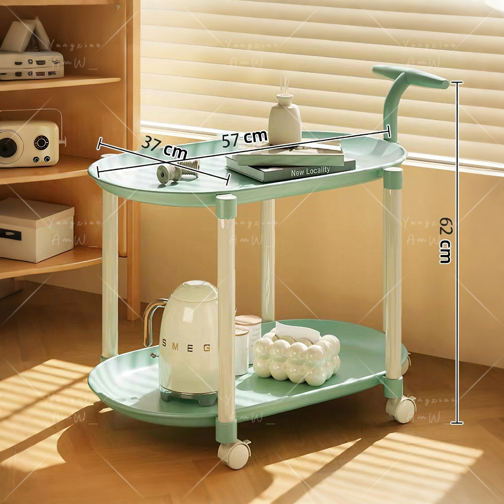 Lucky🐱โต๊ะกาแฟมีล้อเลื่อนขนาดเล็ก โต๊ะขนาดเล็กแบบ2ชั้น3ชั้น รถเก็บของอเนกประสงค์ วัสดุPPสไตล์มินิมอล