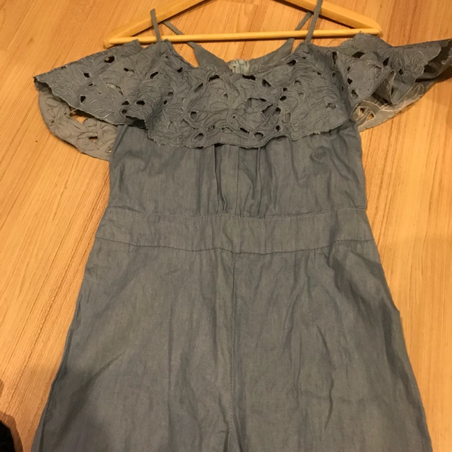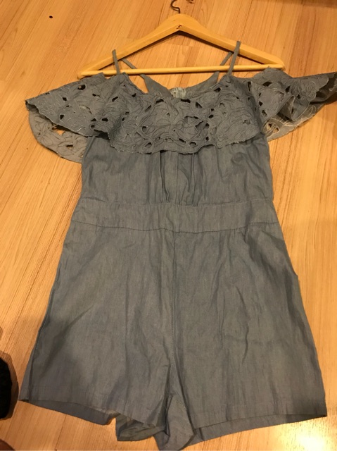 จั๊มสูท สายเดี่ยว ปาดบ่า ขาสั้น ผ้ายีนส์ สียีนส์ มือ1