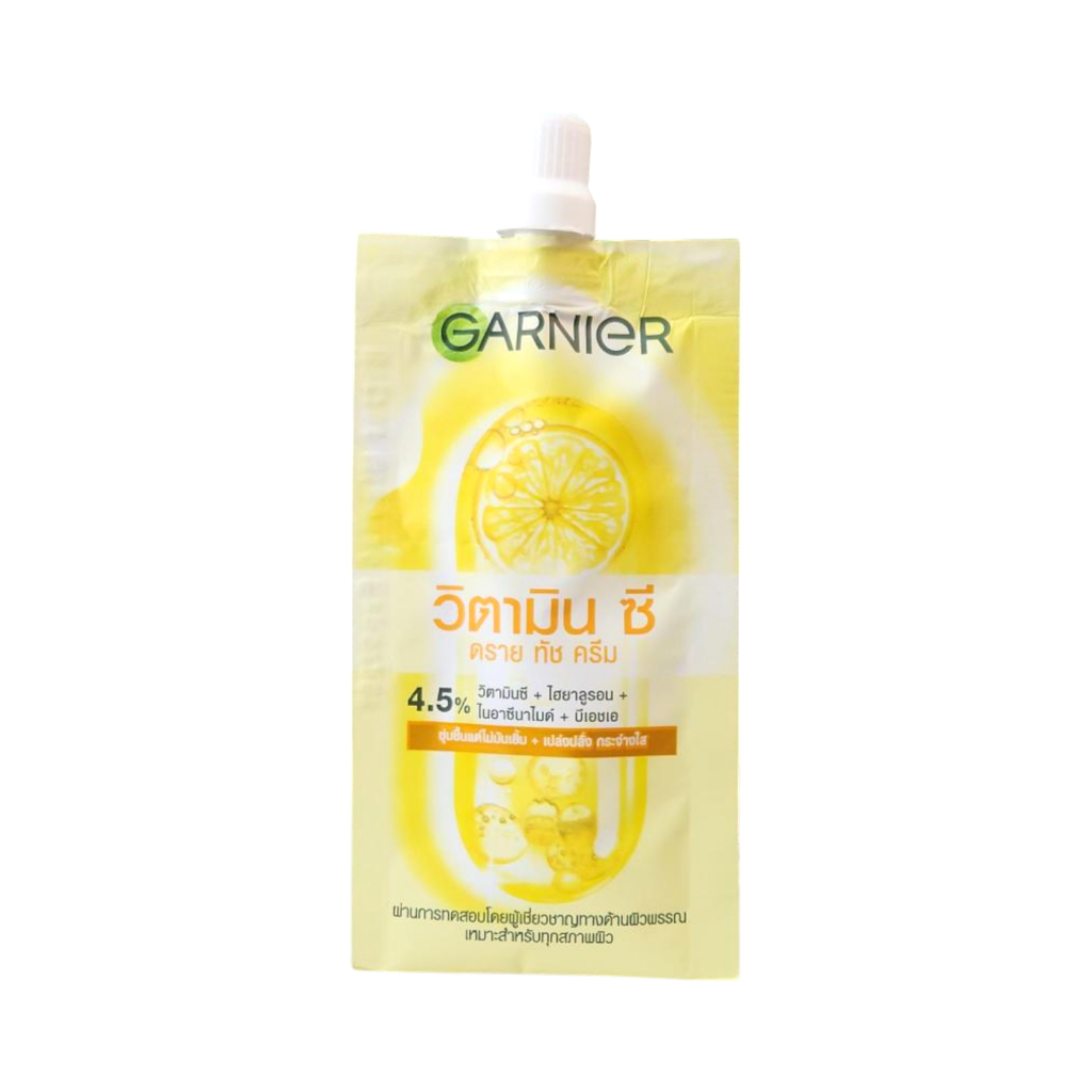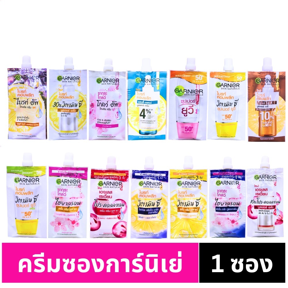 (1 ซอง) การ์นิเย่ ครีมซอง ฝาหมุน ไลท์ คอมพลีท/ซากุระ/เอจเลส/ยูวี/วิตามินซี 7 มล. Garnier Light complete/Vit C