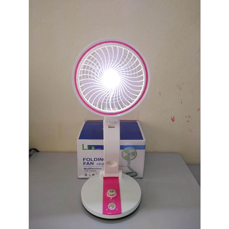 พัดลมตั้งโต๊ะ พับได้ ชาร์ทไฟได้ มีไฟ LED รุ่น LR 2018 ทรงสวย สะดวก พกพาง่ายย (สีชมพู)