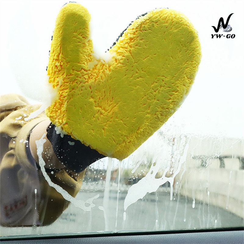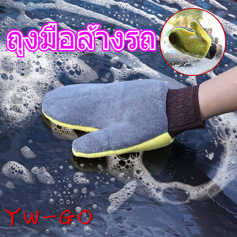 ถุงมือล้างรถกำมะหยี่ปะการังสองด้าน ถุงมือทำความสะอาดรถไ ม่ทำร้ายสีรถG2705