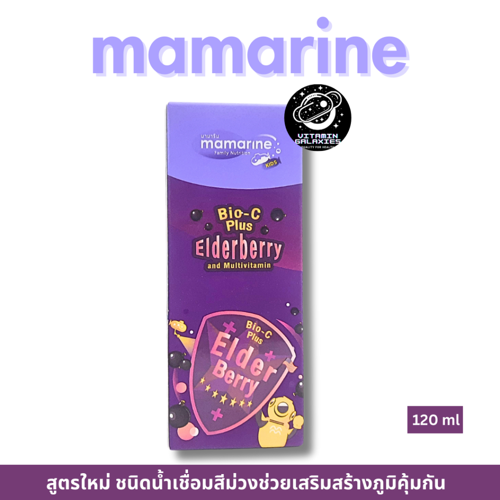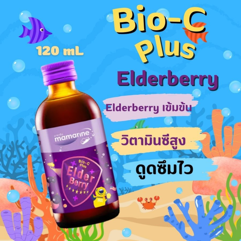 Mamarine Kids Bio-C plus Elderberry มามารีน คิดส์ เอลเดอร์เบอร์รี่ 120 มล.