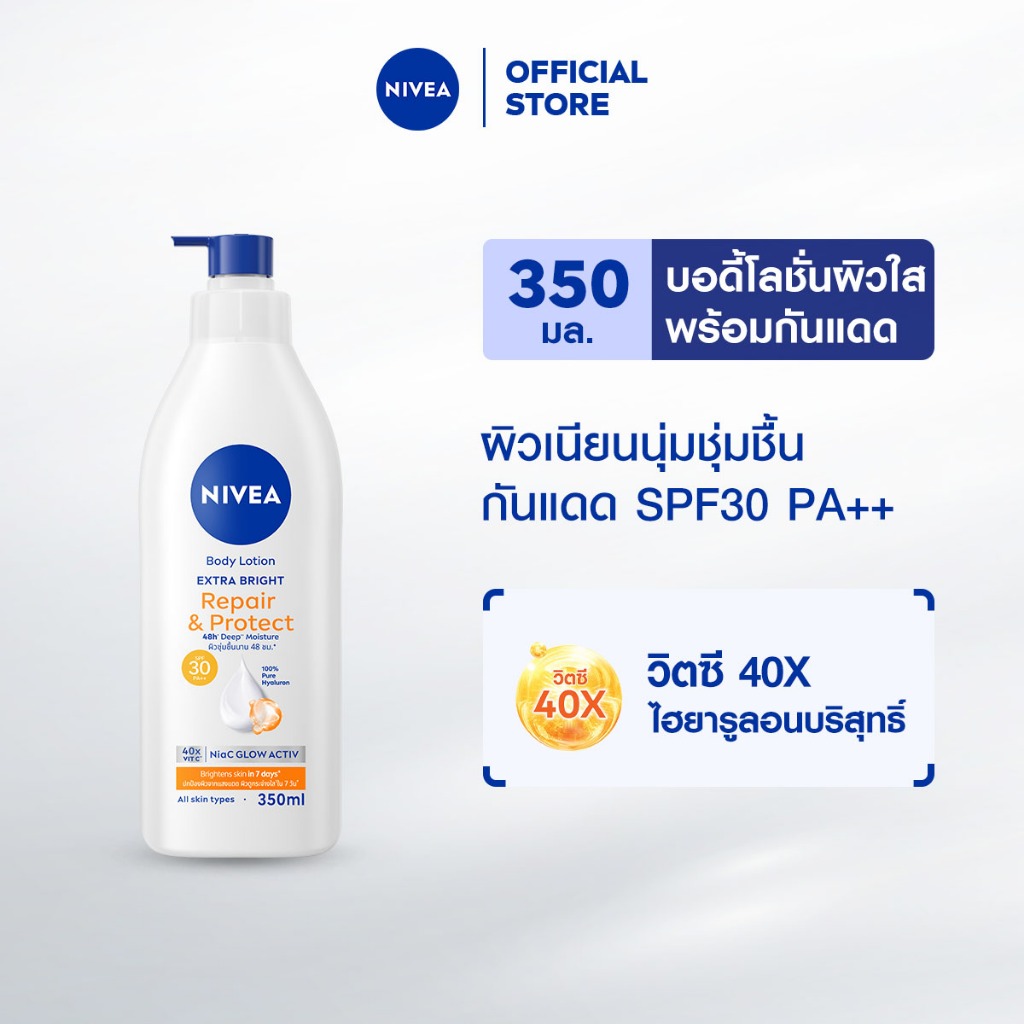 นีเวีย โลชั่นบำรุงผิวกาย เอ็กซ์ตร้า ไบรท์ รีแพร์ แอนด์ โพรเทค เอสพีเอฟ30 350 มล. NIVEA บอดี้โลชั่นกันแดด กันแดดตัว
