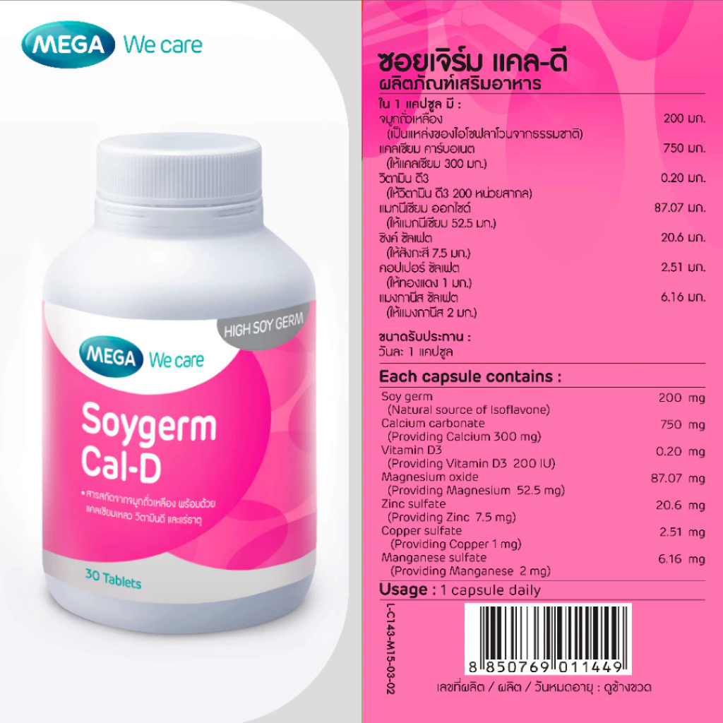 MEGA WE CARE CALCIUM D WITH SOY GERM 30แคปซูล มีจมูกถั่วเหลือง 35+ปี SoyGerm Cal-D [1919]