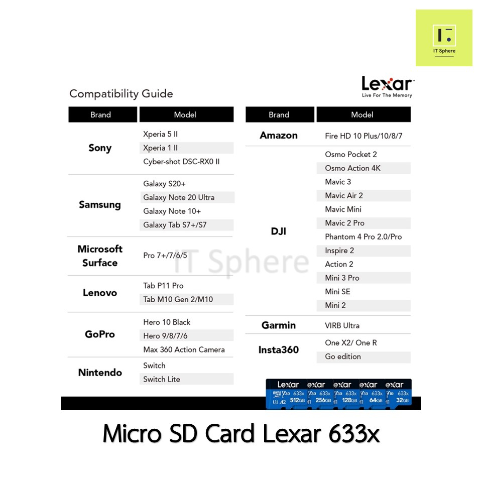 Lexar High Performance 633x microSDHC/microSDXC UHS-I BLUE Series Micro SD Card 32GB 64GB 128GB 256GB 4K memory Card