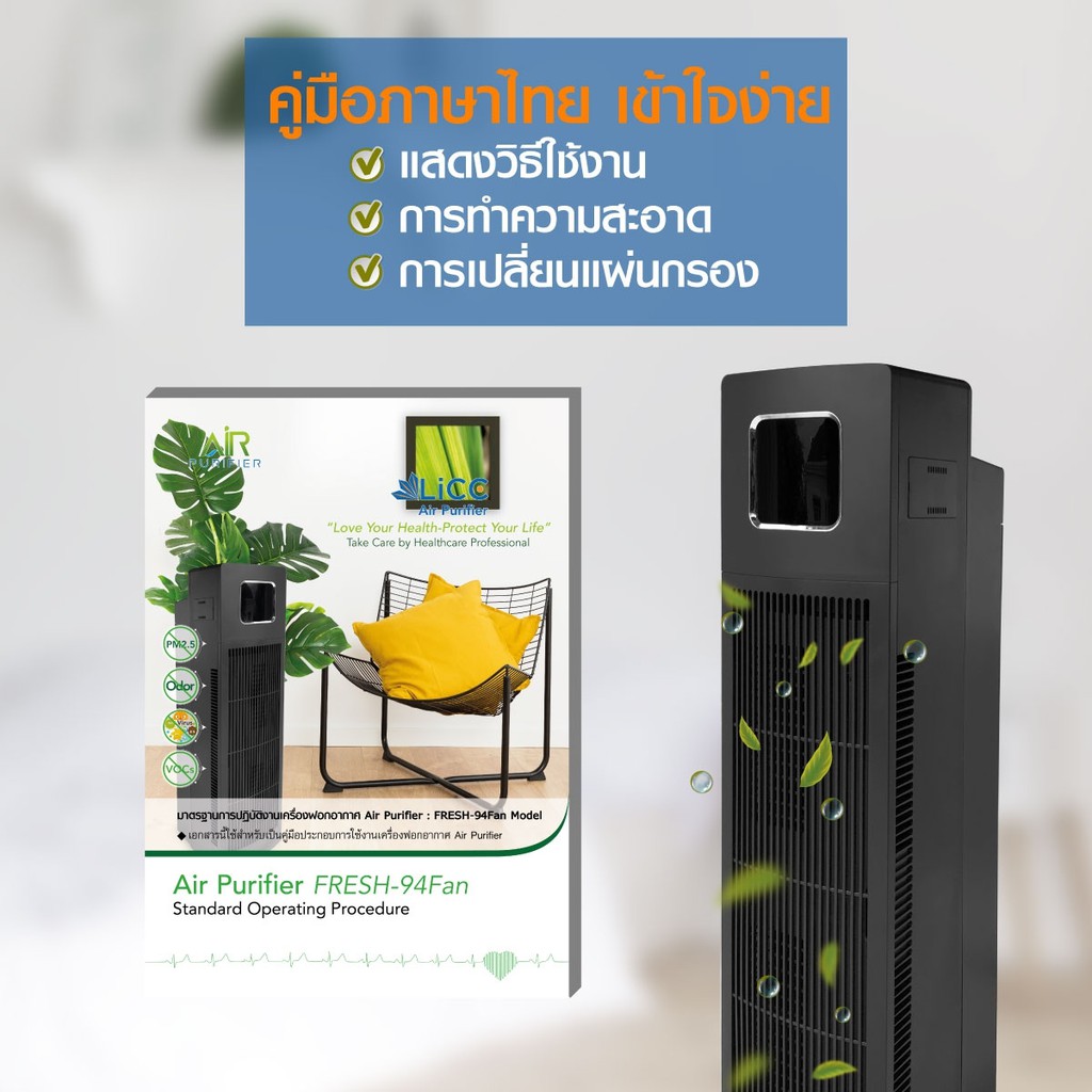 LiCC เครื่องฟอกอากาศ FRESH-94 Fan เป็นพัดลมในตัว กรองฝุ่น PM2.5 สารก่อภูมิแพ้ กลิ่น ไวรัส สารเคมี