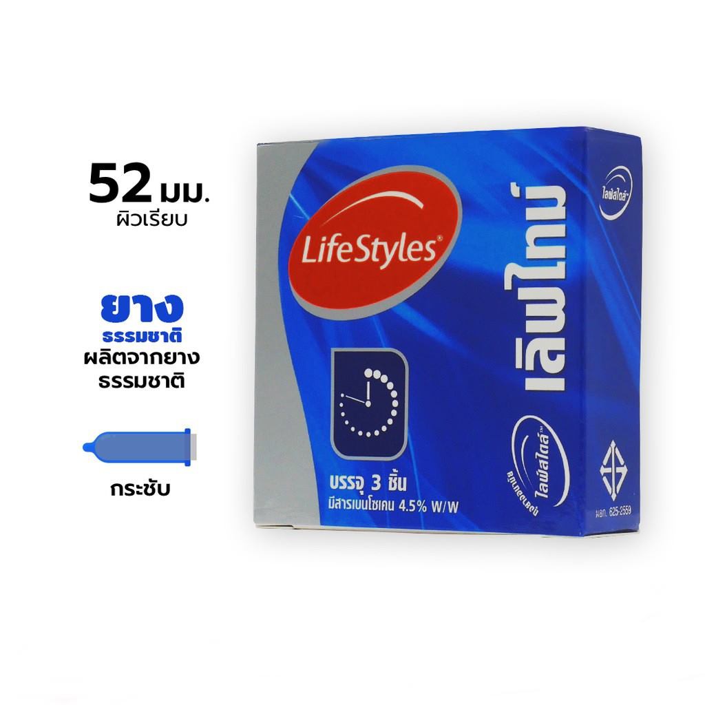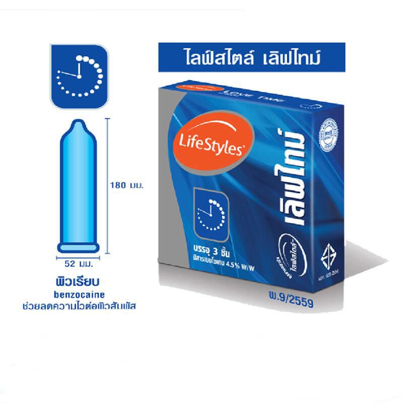 Lifestyles Love Time ถุงยางอนามัย ไลฟ์สไตล์ เลิฟไทม์ ขนาด 52 มม. บรรจุ 3 ชิ้น [1 กล่อง] JJ 4131 มีสารเบนโซเคน ถุงยาง