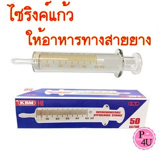Syringe แก้วให้อาหาร ไซริงค์แก้ว แบบฉีด 50ml. หัวให้อาหารทางสายยาง กระบอกป้อนอาหาร ทนความร้อน #L1