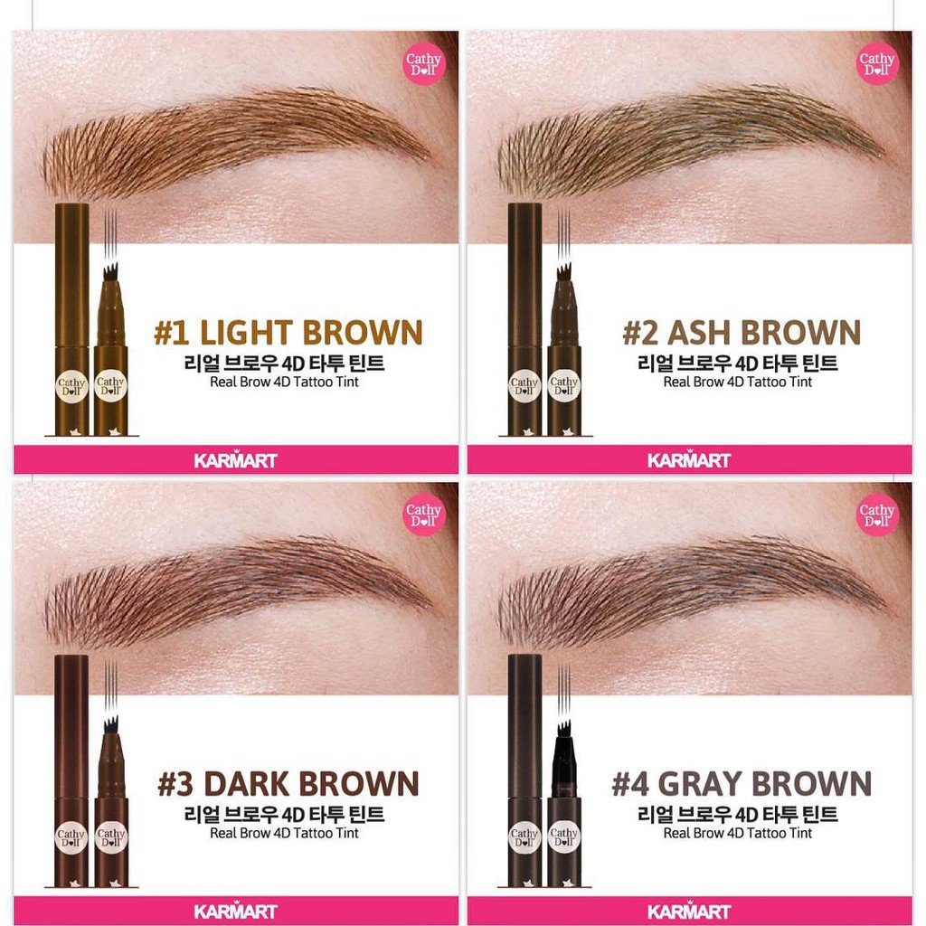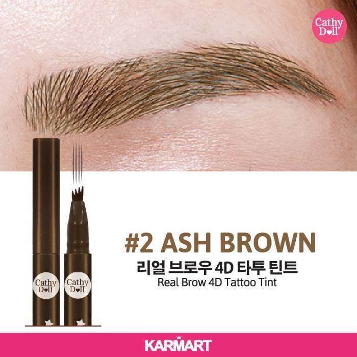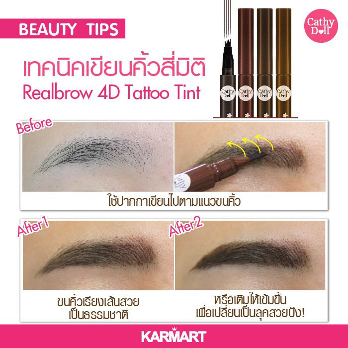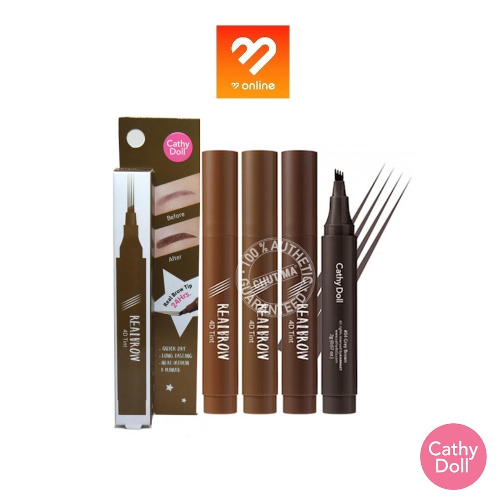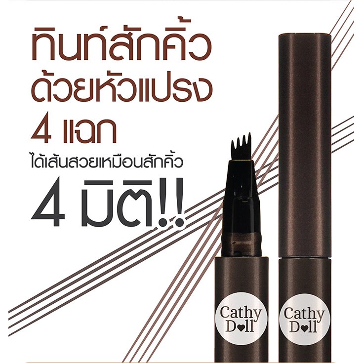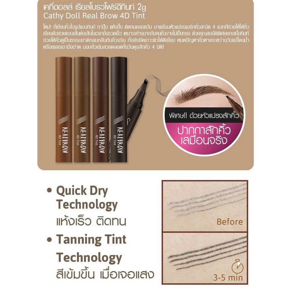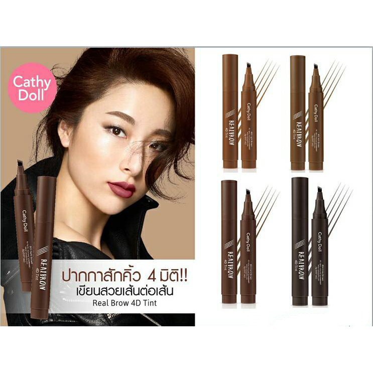 แพคเก็จใหม่ Cathy Doll Real Brow 4D Tint เคที่ดอลล์ เรียลโบรว์ 4ดี ทินท์ เขียนคิ้ว เนื้อน้ำ 2 g. ทาปุ๊บ แห้งปั๊บ ติดทน