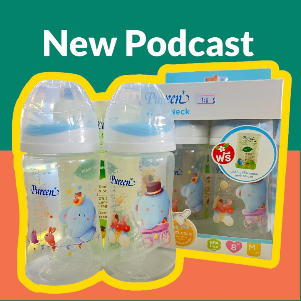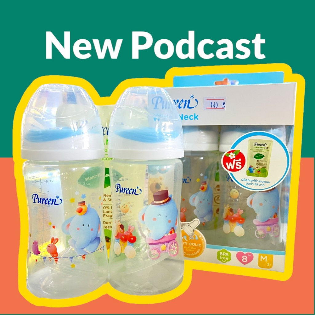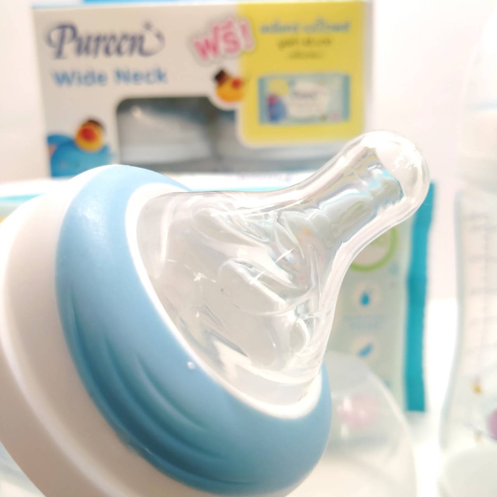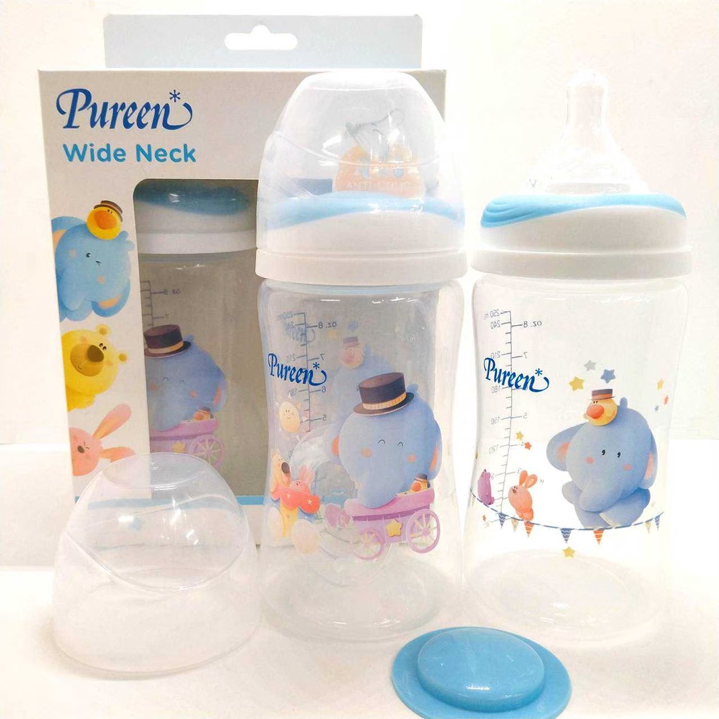 ขวดนม PP เพียวรีน Pureen คอกว้าง ลายน้องช้าง 8 oz. พร้อมจุกไซส์ M (แพ็ค 2 ขวด ) พร้อมส่ง