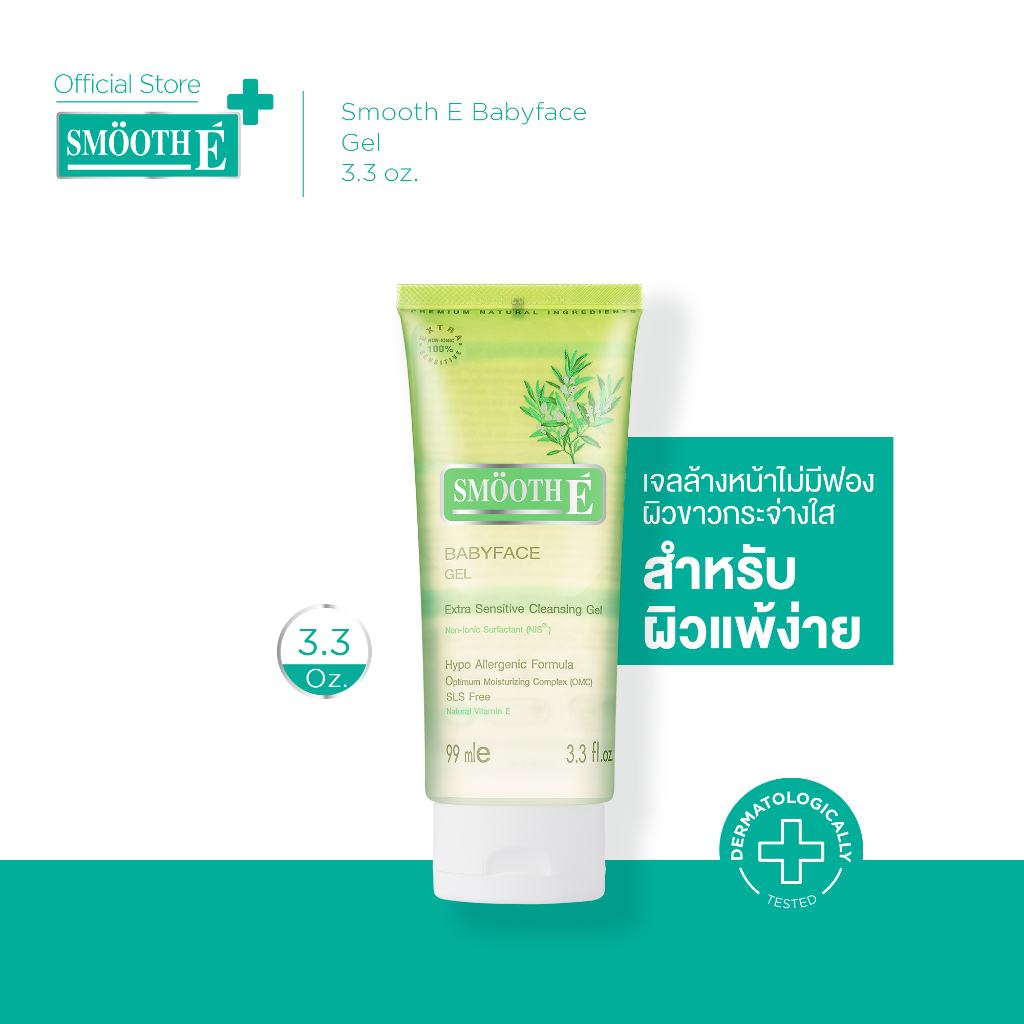 Smooth E Babyface Gel เบบี้เฟซ เจล เจลล้างหน้า ผิวแพ้ง่าย ไม่มีฟอง อ่อนโยนต่อผิว หน้าใส ไร้สิว 1.5, 3.3 หรือ 5.5 ออนซ์