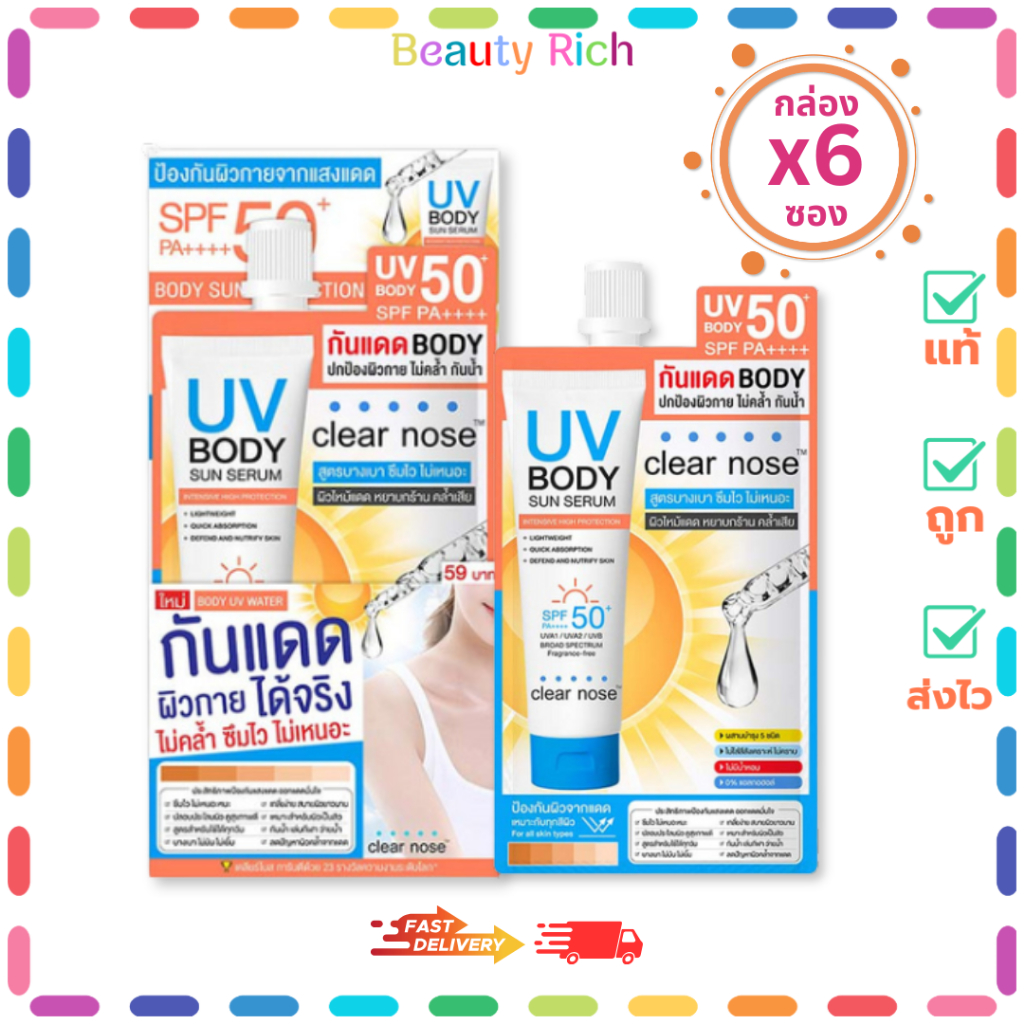 (กล่อง 6 ซอง) Clear Nose กันแดดตัวเคลียร์โนสบอดี้ SPF50+ PA++++ (ปริมาณ 25 ml.)