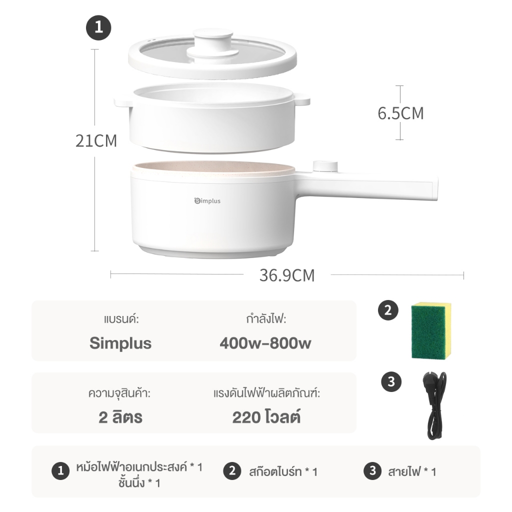 Simplus หม้อไฟฟ้าอเนกประสงค์ 2 ลิตร เหมาะสำหรับ 2-4 คน ควบคุมอุณหภูมิแบบคู่ หม้อไฟฟ้าขนาดเล็ก DZGH009
