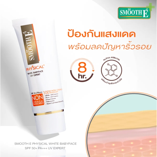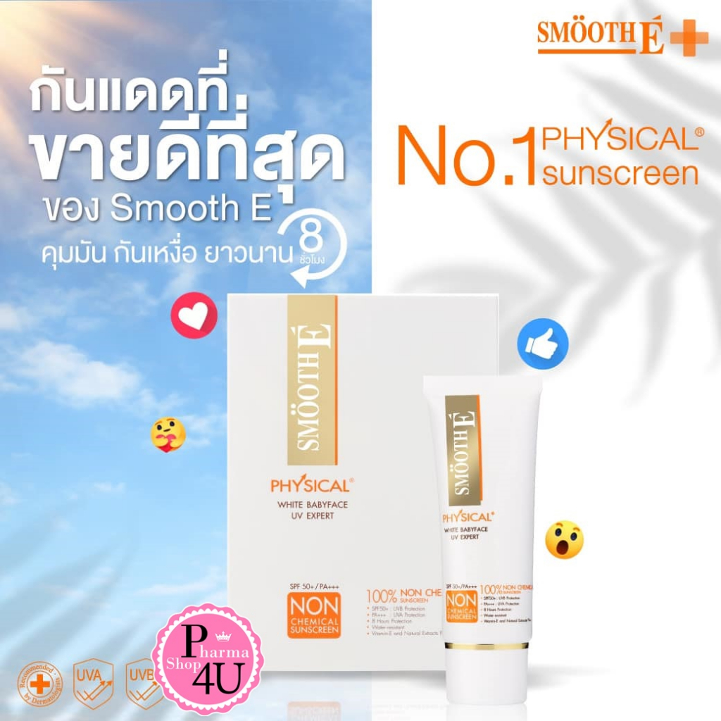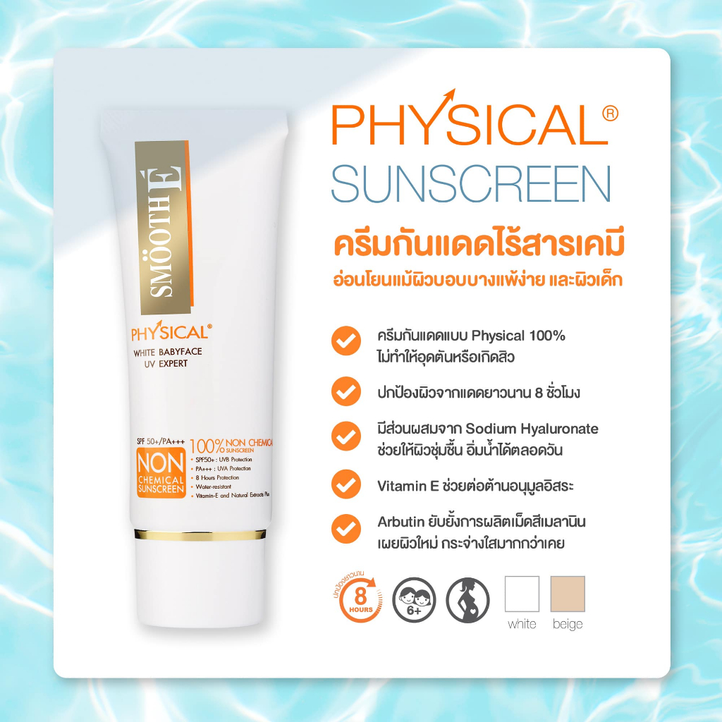 Smooth E Physical Sunscreen SPF50 กันแดด สมูทอี มีขนาด15กรัม,40กรัม(สีเบจ,สีขาว)