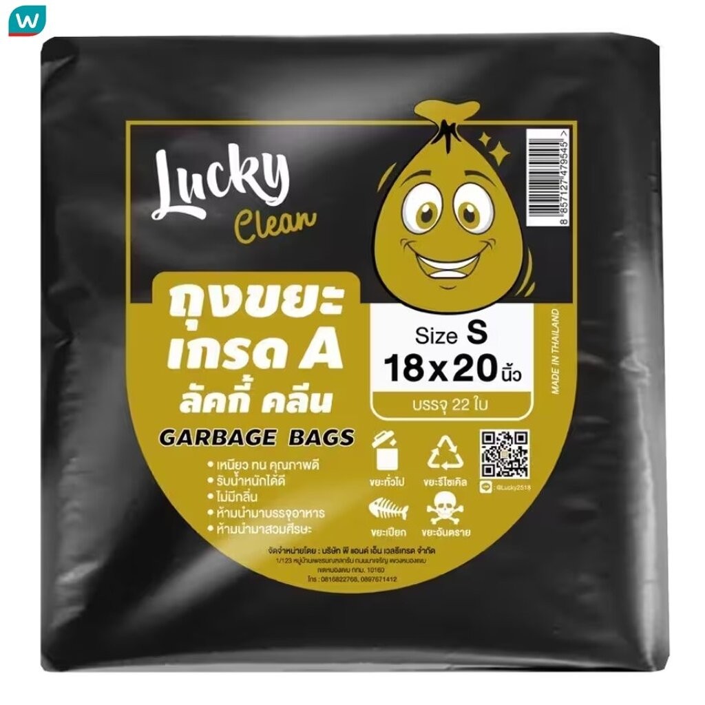 Lucky ลัคกี้ คลีน ถุงขยะแบบห่อ ไซส์ S 18x20นิ้ว 22ใบ