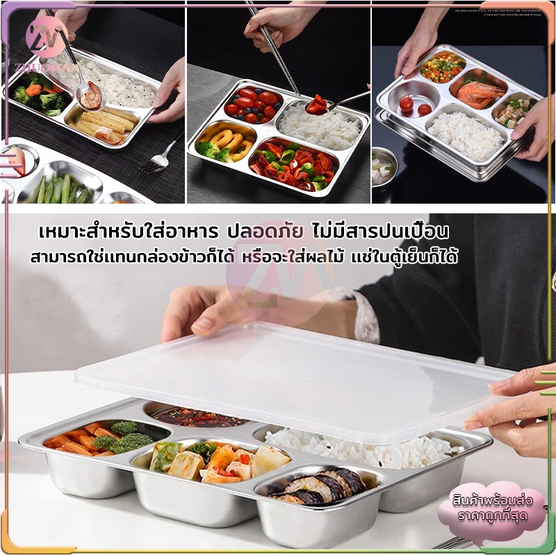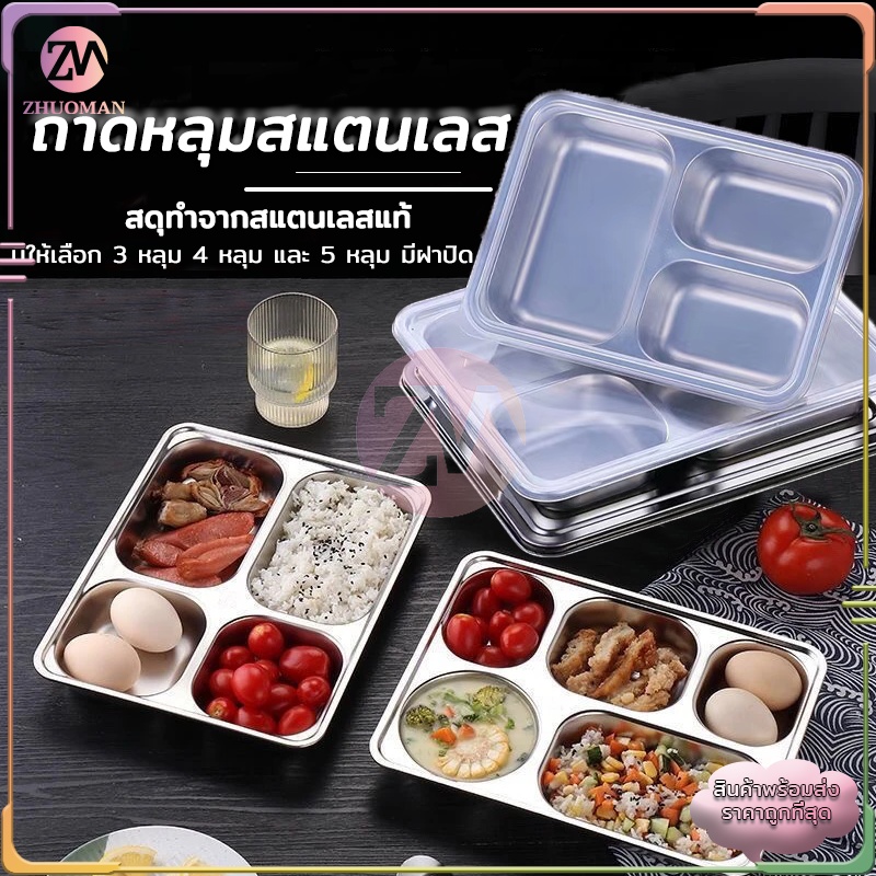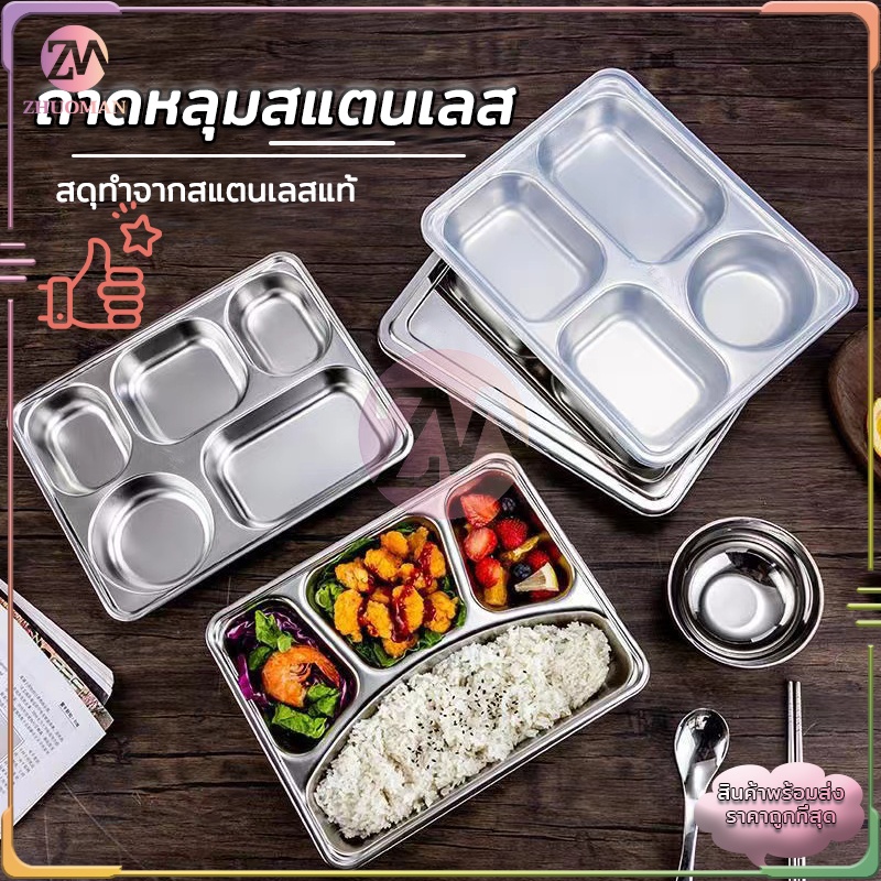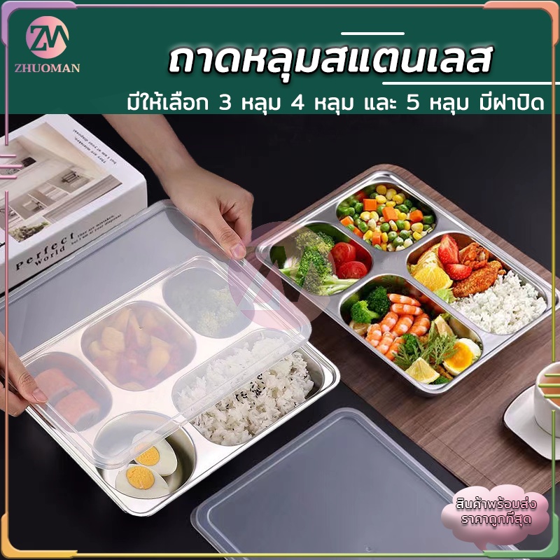 ถาดหลุมสแตนเลส ถาดหลุม 304กล่องข้าวสแตนเลส 3หลุม/4หลุม/5หลุม กล่องข้าวหลุม ถาดหลุมสแตนเลสมีฝาปิด กล่องข้าว 4 ช่อง