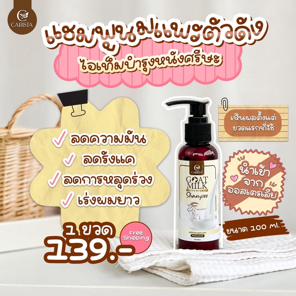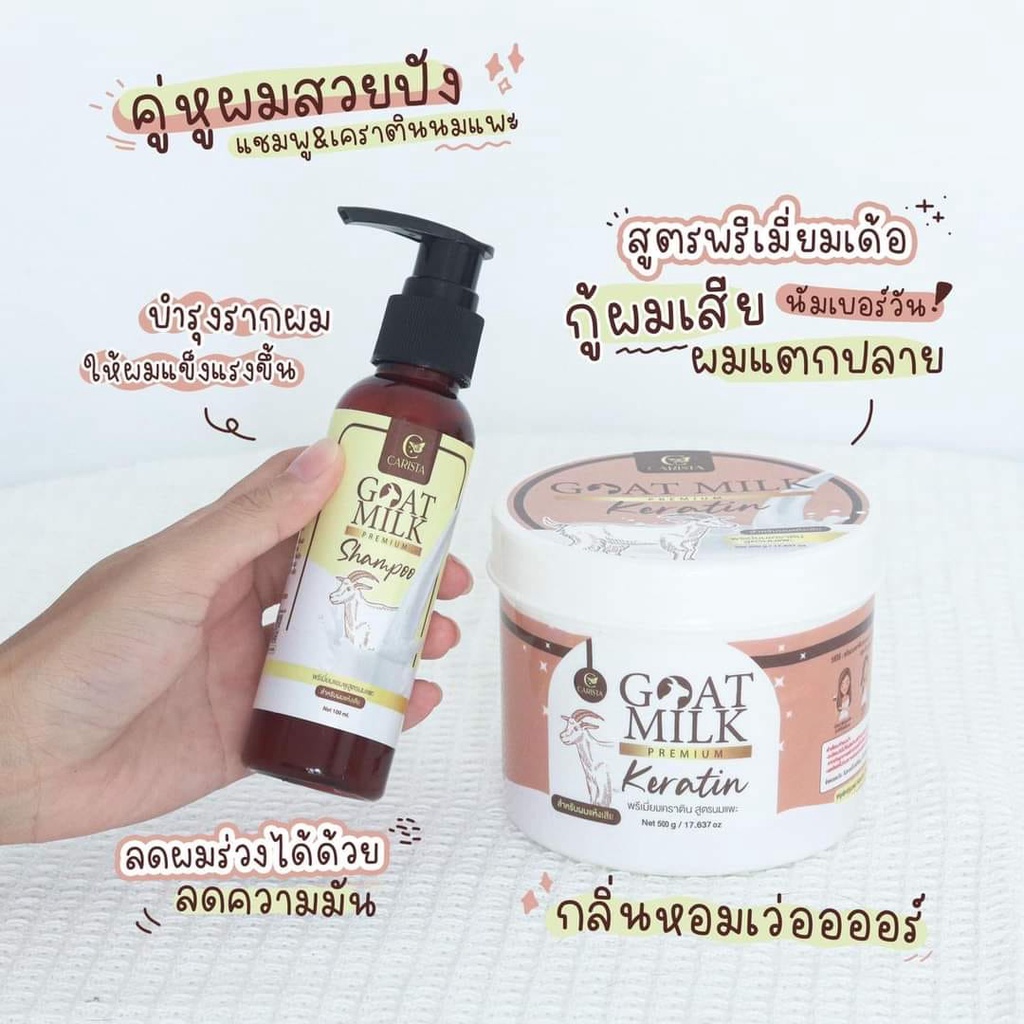 (แบบขวด) แชมพูนมแพะ ฟื้นฟู บำรุง เร่งผมยาว ลดผมร่วง ลดผมมัน รังแค Goat Milk Shampoo เคราตินพรีเมี่ยม Carista