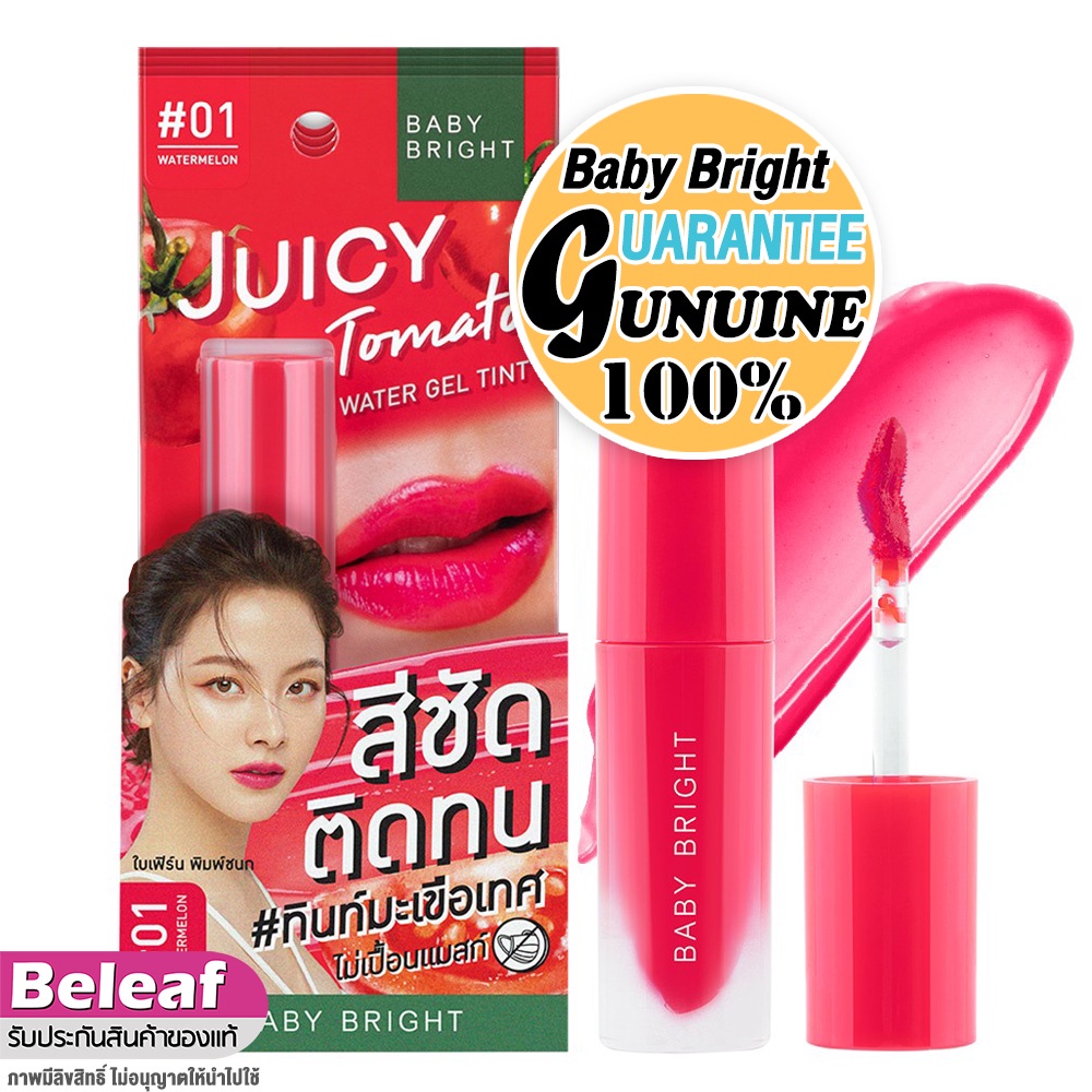 เบบี้ไบร์ท ลิปใบเฟิร์น ไม่ติดแมส ติ้นมะเขือเทศ 2.5g Baby Bright Juicy Tomato Water Gel Tint