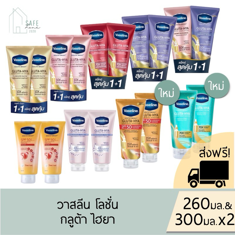 🔥ส่งฟรี+ลด 50% ในไลฟ์🔥‼️แพคคู่‼️Vaseline GLUTA-HYA วาสลีน กลูต้าไฮยา เซรั่มบำรุงผิว✔️260-300 มล. X 2✔️มี 9 สูตรให้เลือก