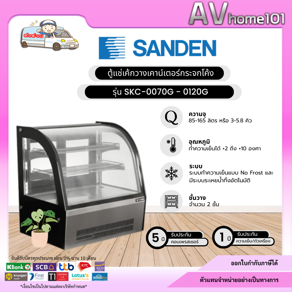 ตู้แช่เค้กวางเคาน์เตอร์ กระจกโค้ง SANDEN รุ่น SKC-0070G - 0090G