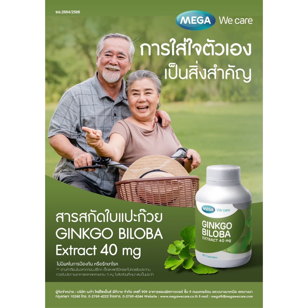 Mega We Care Ginkgo Biloba เมก้าวีแคร์ จิงโกะ บิโลบา บรรจุ 60 แคปซูล (05461)