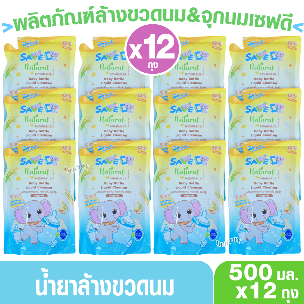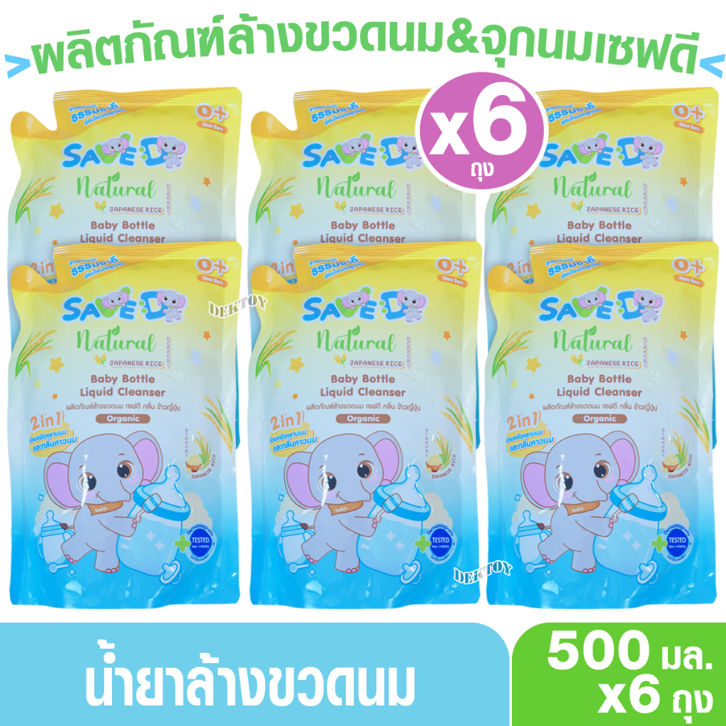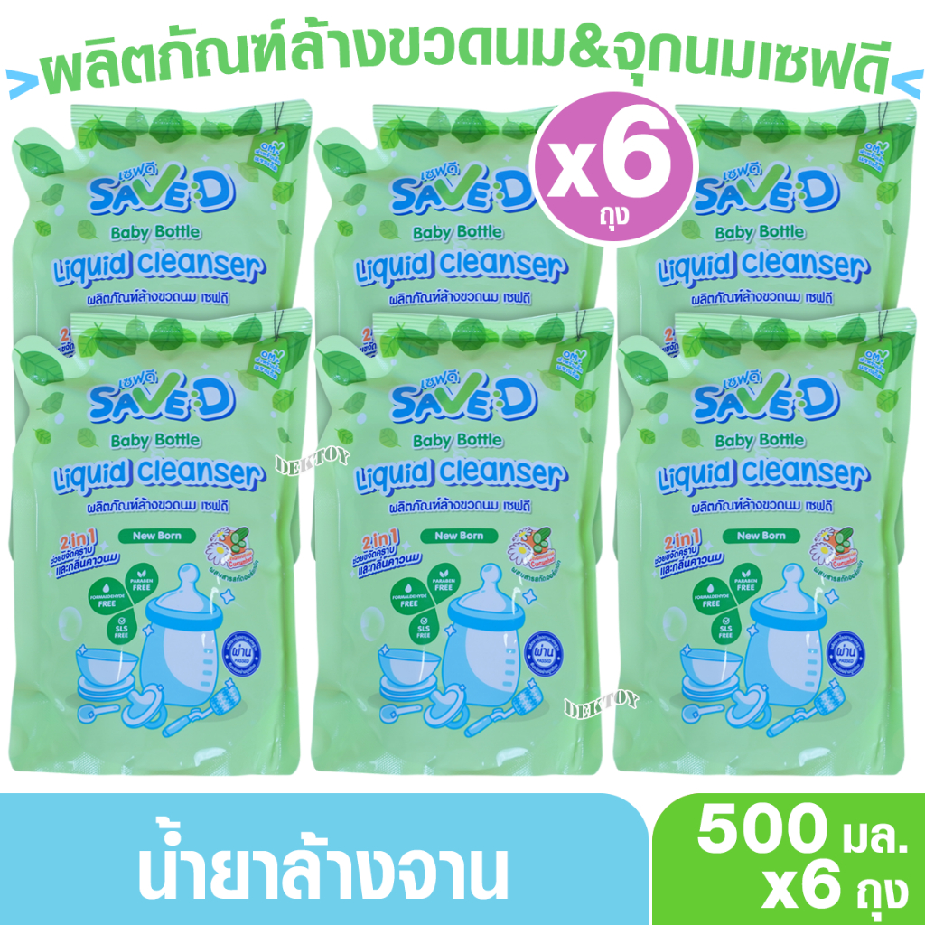 6 และ12ถุง Save D ผลิตภัณฑ์ล้างขวดนมและจุกนมเซฟดี 500 มล.