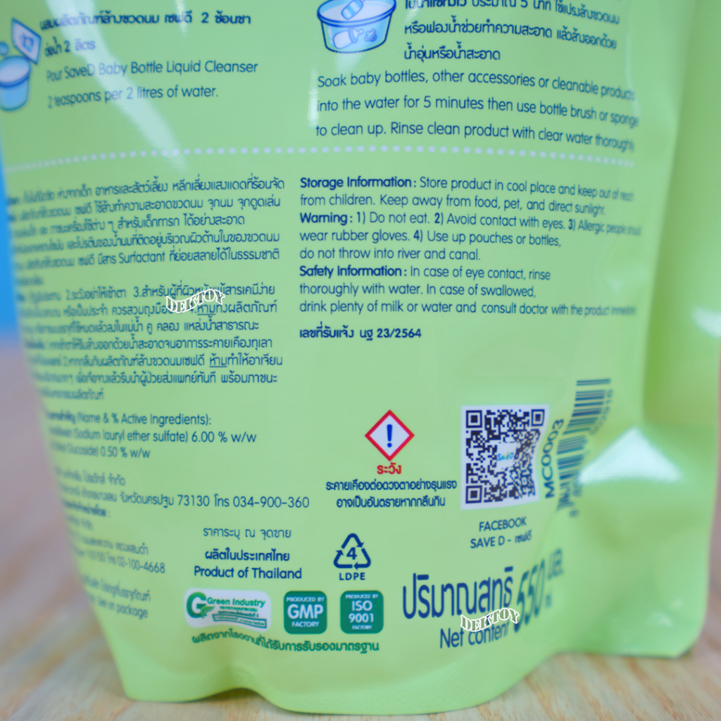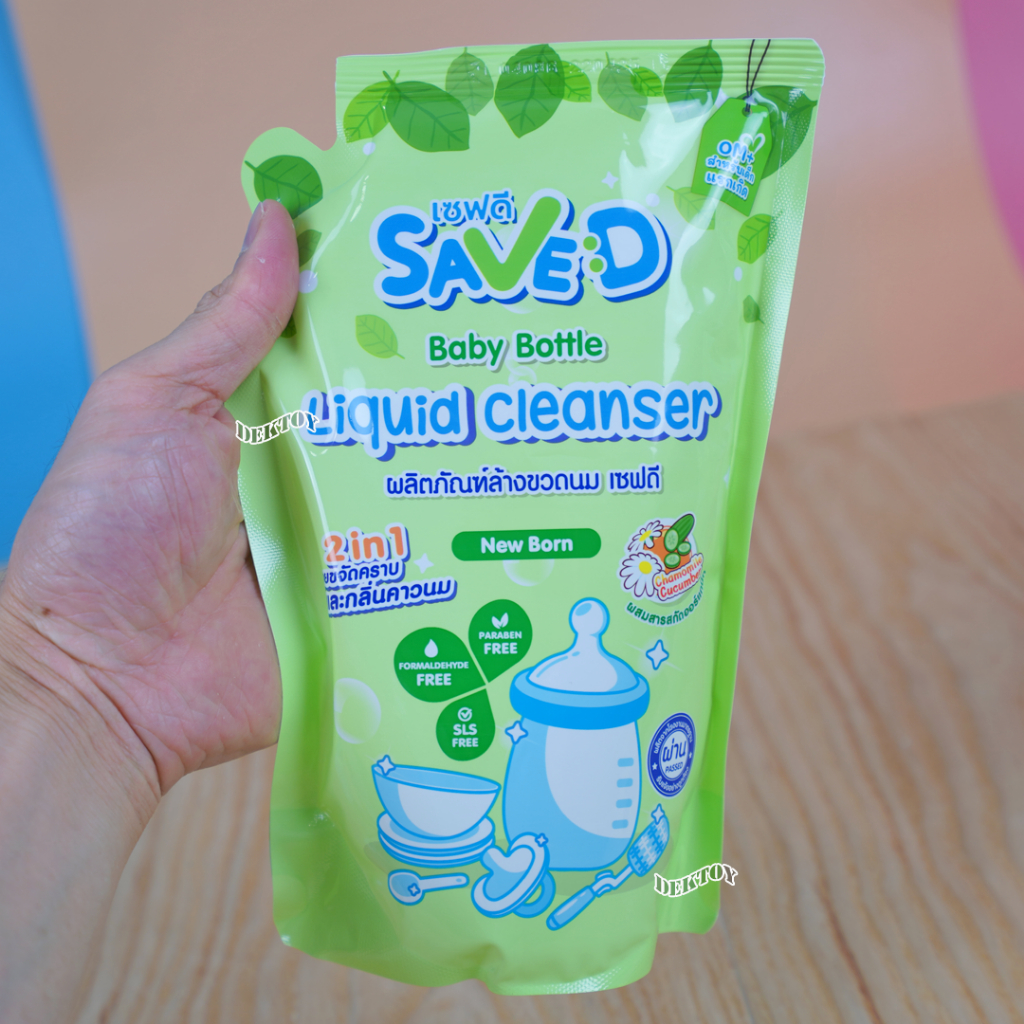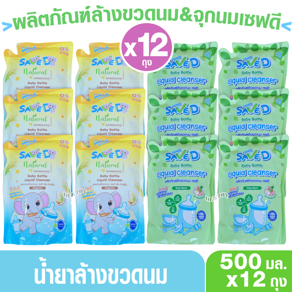6 และ12ถุง Save D ผลิตภัณฑ์ล้างขวดนมและจุกนมเซฟดี 500 มล.