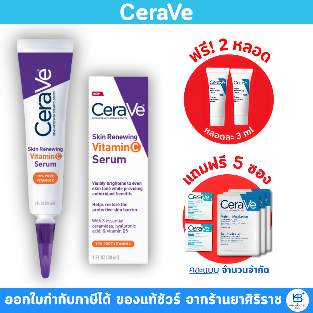 [ ของแถม 5 ซอง + 2 หลอด] CeraVe Skin Renewing Vitamin C Serum เซราวี วิตามินซี เซรั่ม 30 มล.