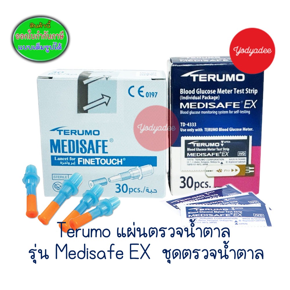 Terumo medisafe ex แถบตรวจน้ำตาลพร้อมเข็มเจาะเลือด เทอรูโม เมดิเซฟ อีเอ็กซ์ อย่างละ30ชิ้น 86843