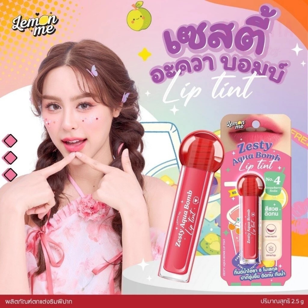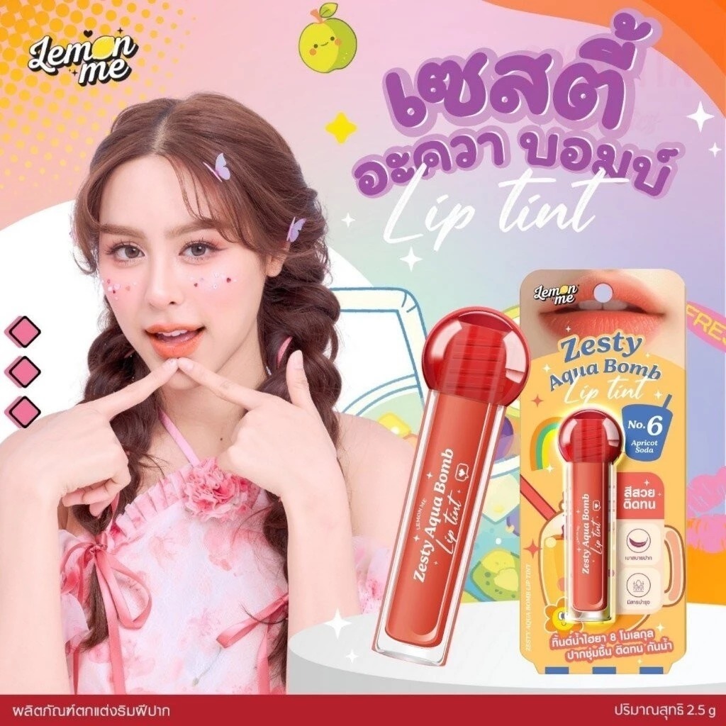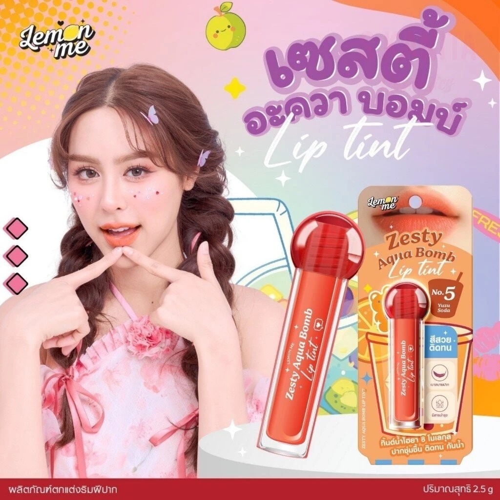 Lemon me Zesty Aqua Bomb Lip Tint เลม่อนมี ลิปทิ้นท์น้ำไฮยา ปากชุ่มชื้น ติดทน กันน้ำ