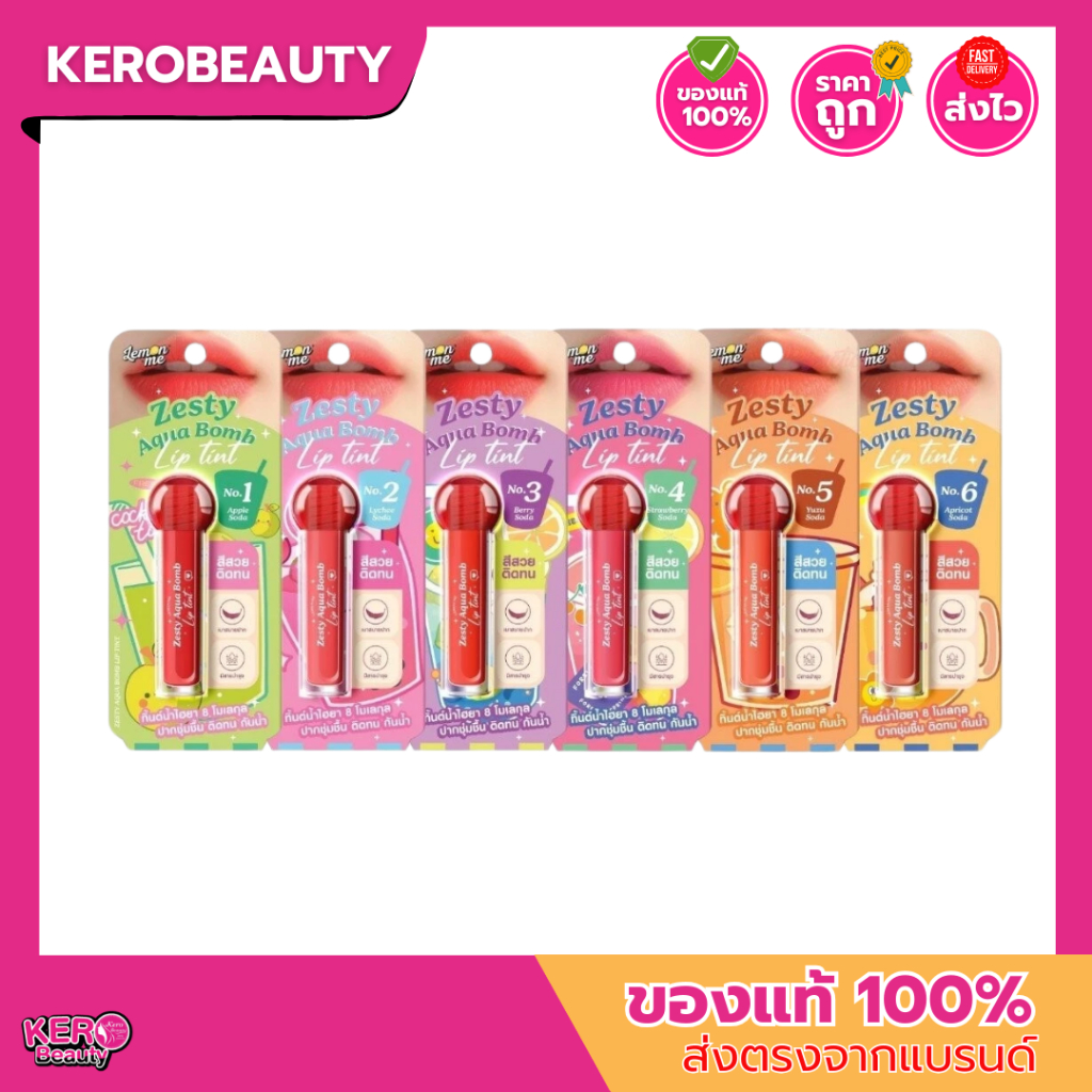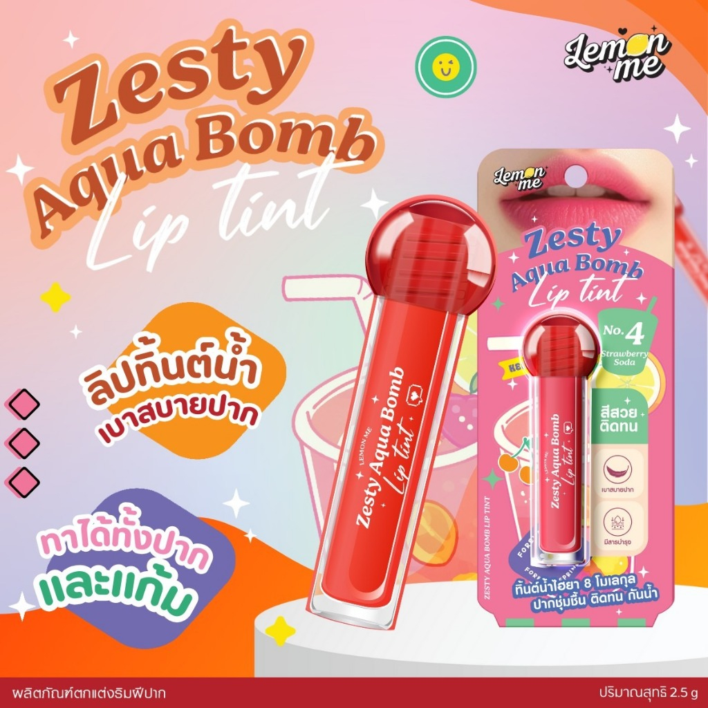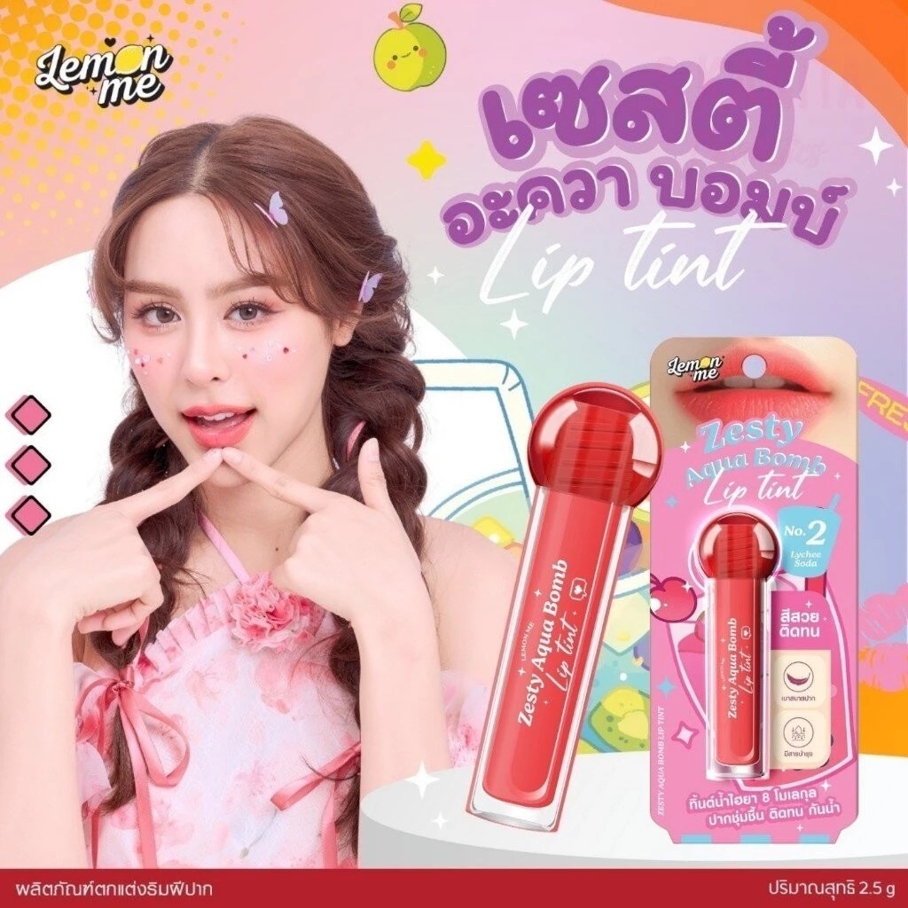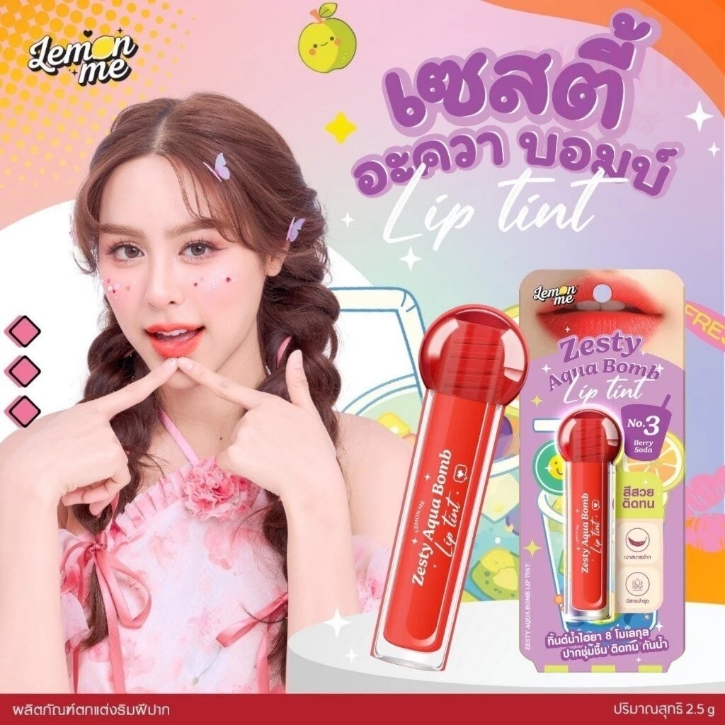 Lemon me Zesty Aqua Bomb Lip Tint เลม่อนมี ลิปทิ้นท์น้ำไฮยา ปากชุ่มชื้น ติดทน กันน้ำ