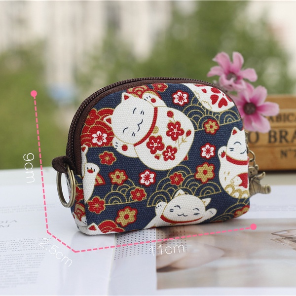 กระเป๋าสตางค์ ผ้าแคนวาส พิมพ์ลายการ์ตูนแมว ขนาดเล็ก สไตล์ญี่ปุ่น สําหรับผู้หญิง