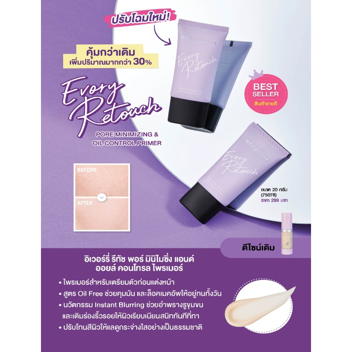 🌟 โฉมใหม่ ไพร์เมอร์ สูตร ปราศจากน้ำมัน คิวท์เพรส CUTE PRESS EVORY RETOUCH PORE MINIMIZING & OIL CONTROL PRIMER 20กรัม