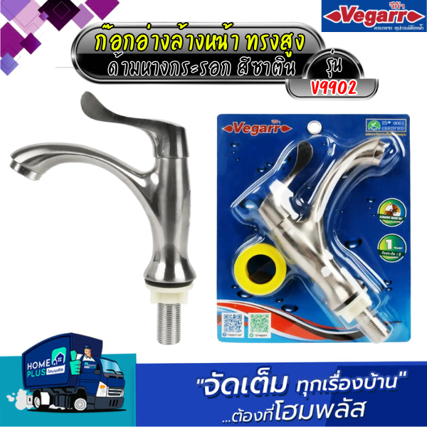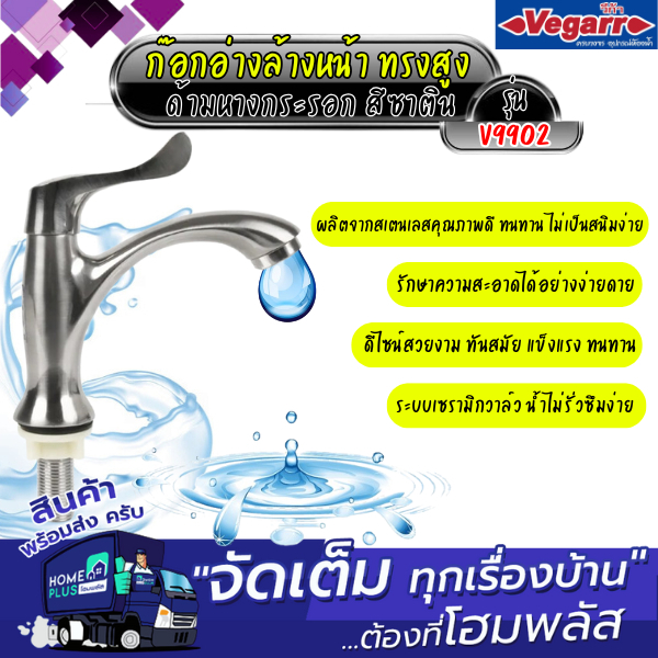 VEGARR ก๊อกอ่างล้างหน้า ทรงสูง ด้ามหางกระรอก สีซาติน V9902