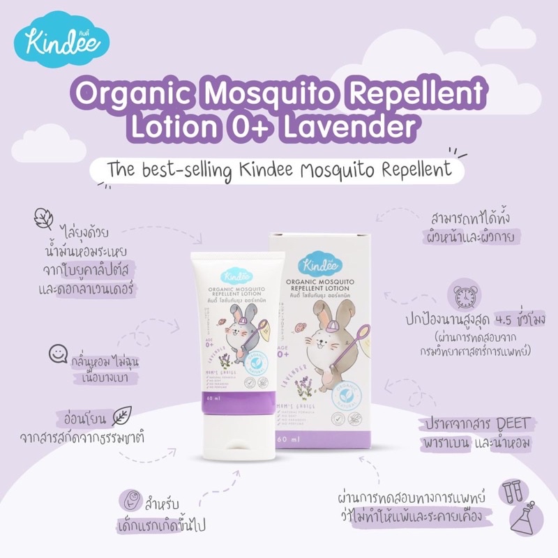 ❤️ใช้โค้ดส่งฟรี +ลอตใหม่ล่าสุด ❤️ Kindee คินดี้โลชั่นกันยุง กลิ่นลาเวนเดอร์ ขนาด 60 มล.