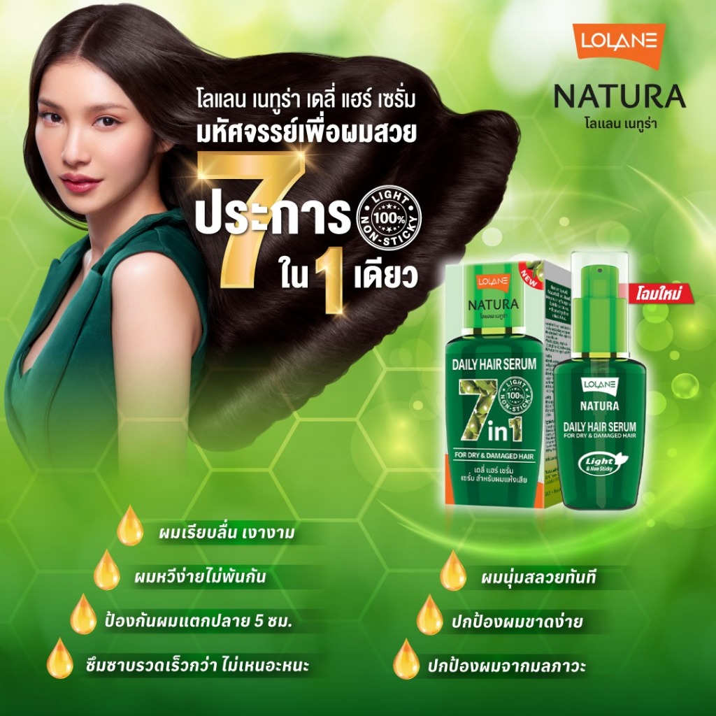 (50ml.) Lolane Natura Daily Hair Serum โลแลน เนทูร่า เดรี่ แฮร์เซรั่ม สำหรับผมแห้งเสีย สีเขียว[0654]