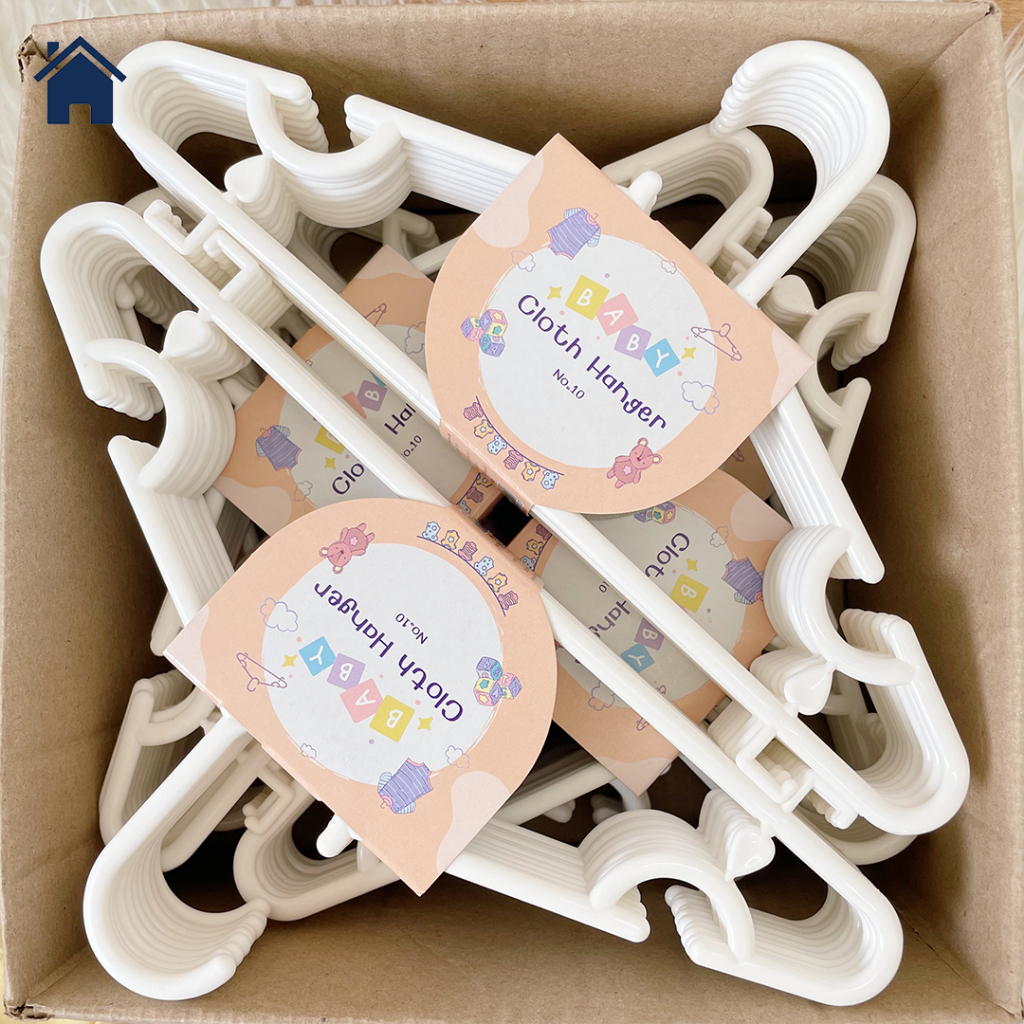 ไม้แขวนเสื้อ ไม้แขวนเสื้อเด็ก พลาสติก มินิมอล สีขาว คุณภาพดี (ยกลัง 6 แพ็ค/60 ชิ้น)