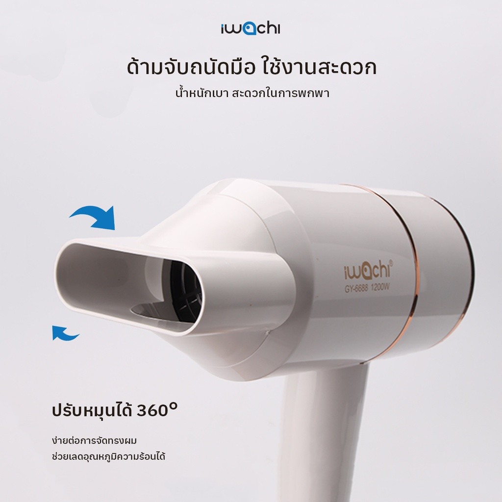 เครื่องเป่าผม IWACHI รุ่น GY-6688 1200W ขนาดพกพา ปรับลม 3 ระดับ ผมแห้งไว ไม่ทำลายเส้นผม