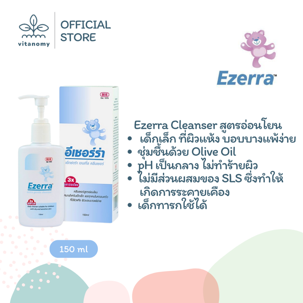 Ezerra cleanser อีเซอร์ร่า คลีนเซอร์ | เจลอาบน้ำสูตรอ่อนโยน สำหรับเด็กเล็ก ที่ผิวแห้ง บอบบางแพ้ง่าย | ขนาด 150 ml