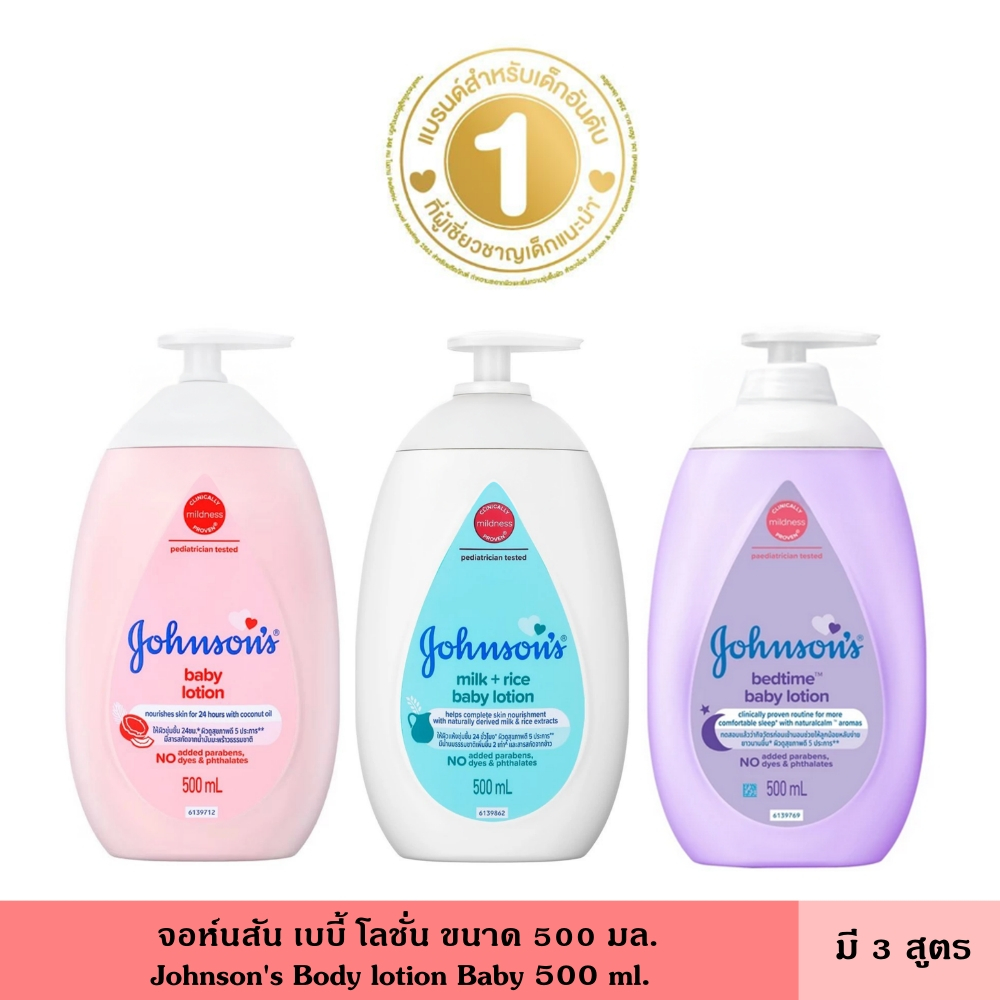Johnson จอห์นสัน เบบี้ โลชั่น ขนาด 500 มล. มี 3 สูตร โลชั่นบำรุงผิวสำหรับเด็ก ครีมทาผิว ครีมบำรุงผิว มีค่า pH ที่เหมาะกั