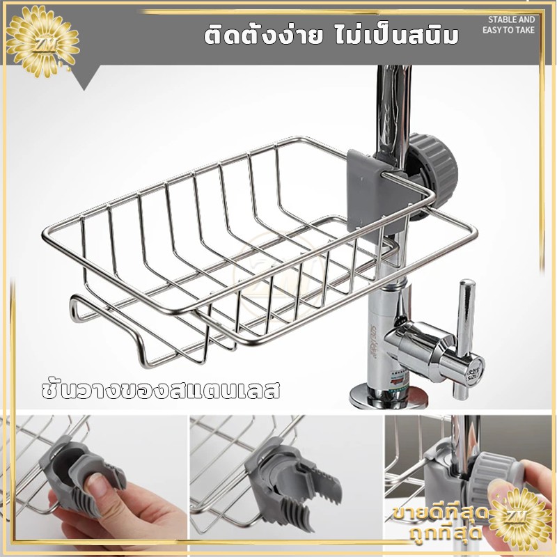 ชั้นวางอ่างล้างจาน ชั้นวางฟองน้ำ ที่วางของ ติดก๊อกน้ำที่วางของติดก๊อกน้ำ ชั้นวางของสแตนเลส มี 2 ขนาด ประกอบง่าย