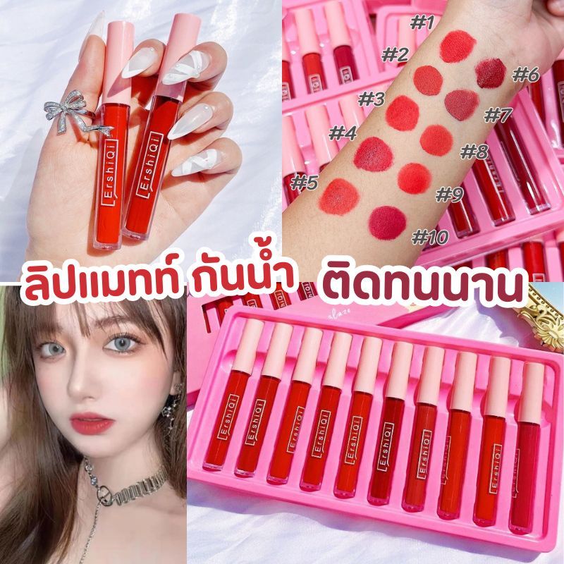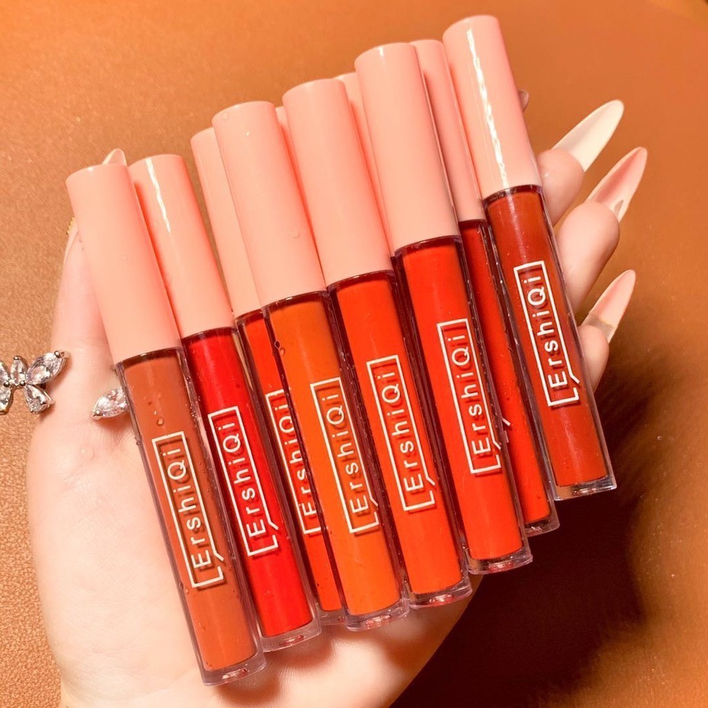 【1ชิ้น】ErshiQi ลิปกลอสเนื้อแมทท์ กันน้ำ ลิปสติก สีส้มอิฐ แดงไม่ติดแก้ว