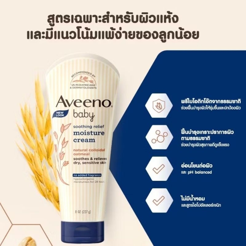 อาวีโน่เบบี้ Exp2027โลชั่นเด็กผิวแห้ง แพ้ง่าย ซูทติ้งรีลีฟ มอยส์เจอร์ครีม 227ก. Aveeno Baby Soothing Moisture Cream