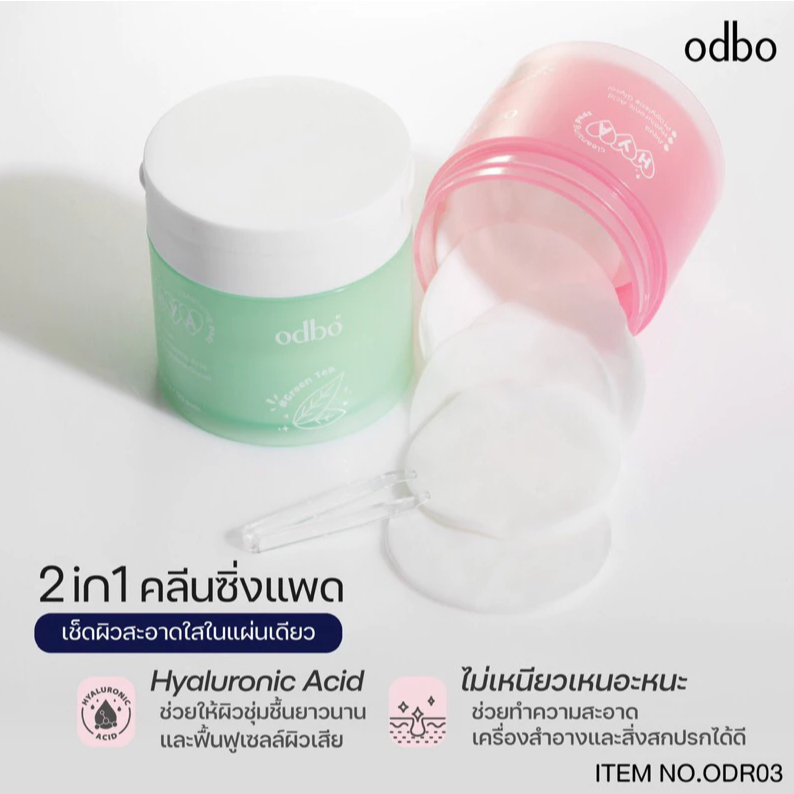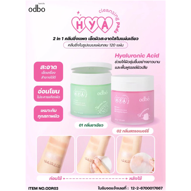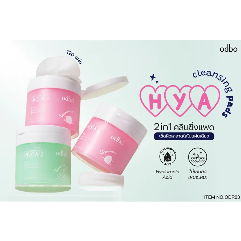 ODBO HYA 2 in 1 CLEANSING PADS โอดีบีโอคลีนซิ่งแพด เช็ดผิวสะอาดใสในแผ่นเดียว บรรจุ 120 แผ่น ODR03 คลีนซิ่ง
